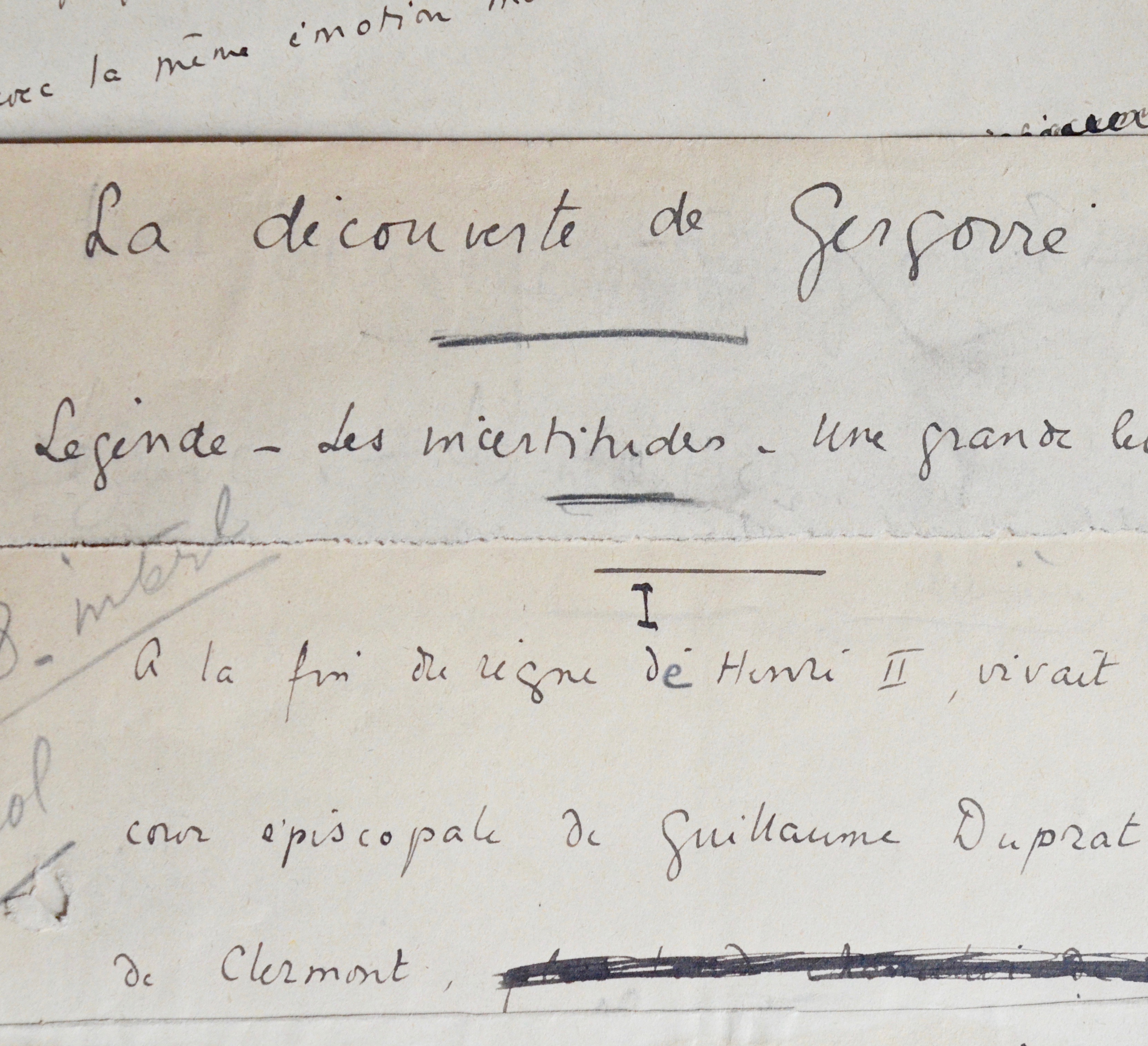Manuscrit de Pierre de Nolhac : « La Découverte de Gergovie »