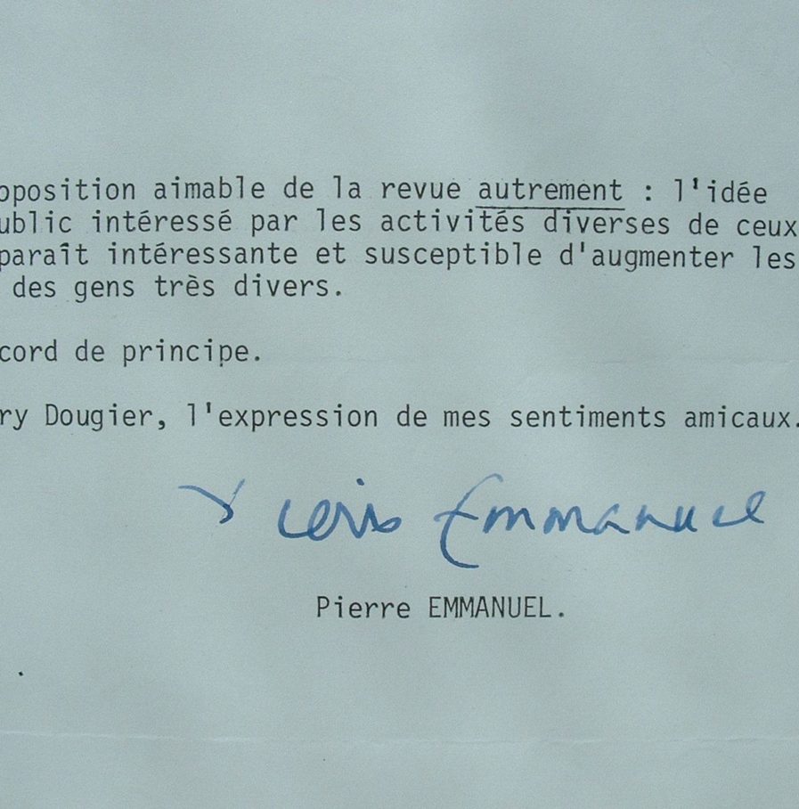 Destinataire : Henry Dougier, directeur de la revue Autrement.