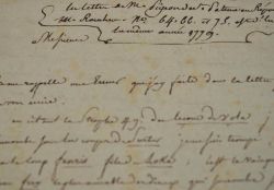Dans le n°40 du Journal de Paris, du 9 février 1779, Jean Baptiste Pigeon de Saint-Paterne (bibliothécaire de Saint-Victor), publiait une lettre ouverte au poète Jean Antoine Roucher (mort sur l'échafaud avec André Chénier) à propos de son analyse de l'ouvrage de Bailly, Lettres sur l'Atlantide de Platon et sur l'ancienne histoire de l'Asie, insérée le 31 décembre précédent. Roucher répondit dans les n°64, 66 et 75 du même journal, puis de nouveau Pigeon de Saint-Paterne dans les numéros 90 et 91 (31 mars/1er avril 1779). Le présent manuscrit est un complément de ce dernier, daté du 6 avril, mais qui semble n'avoir jamais été publié. "En citant la strophe 49 des Leçons de Vola, j'ai dit qu'Odin succombe sous les coups de Surtus, je me suis trompé, Odin est dévoré pat le loup Feuris fils de Loke [...]". Suit un développement plein d'érudition sur des détails de la mythologie.