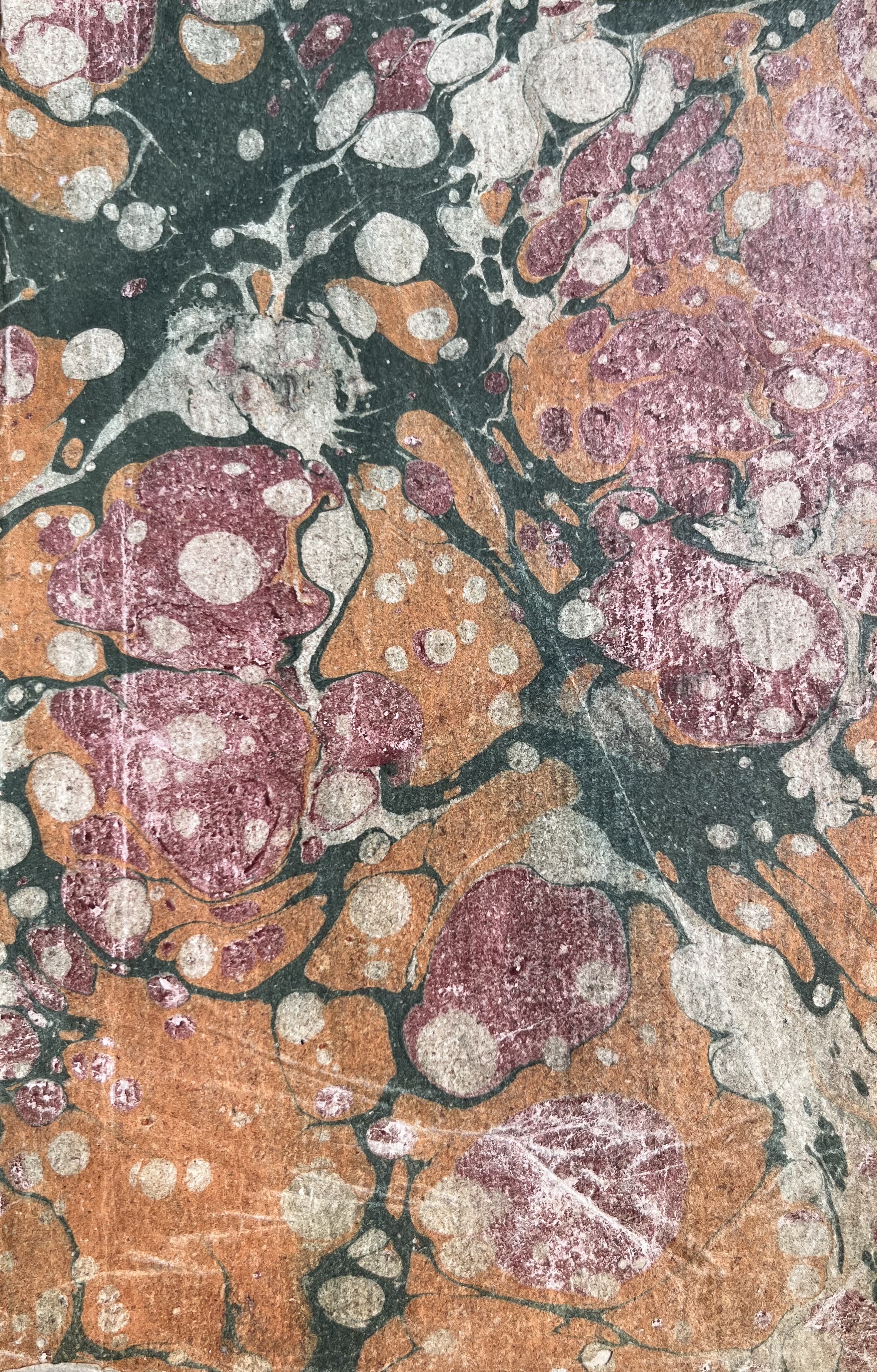 Plaquette brochée sous couverture de papier marbré.