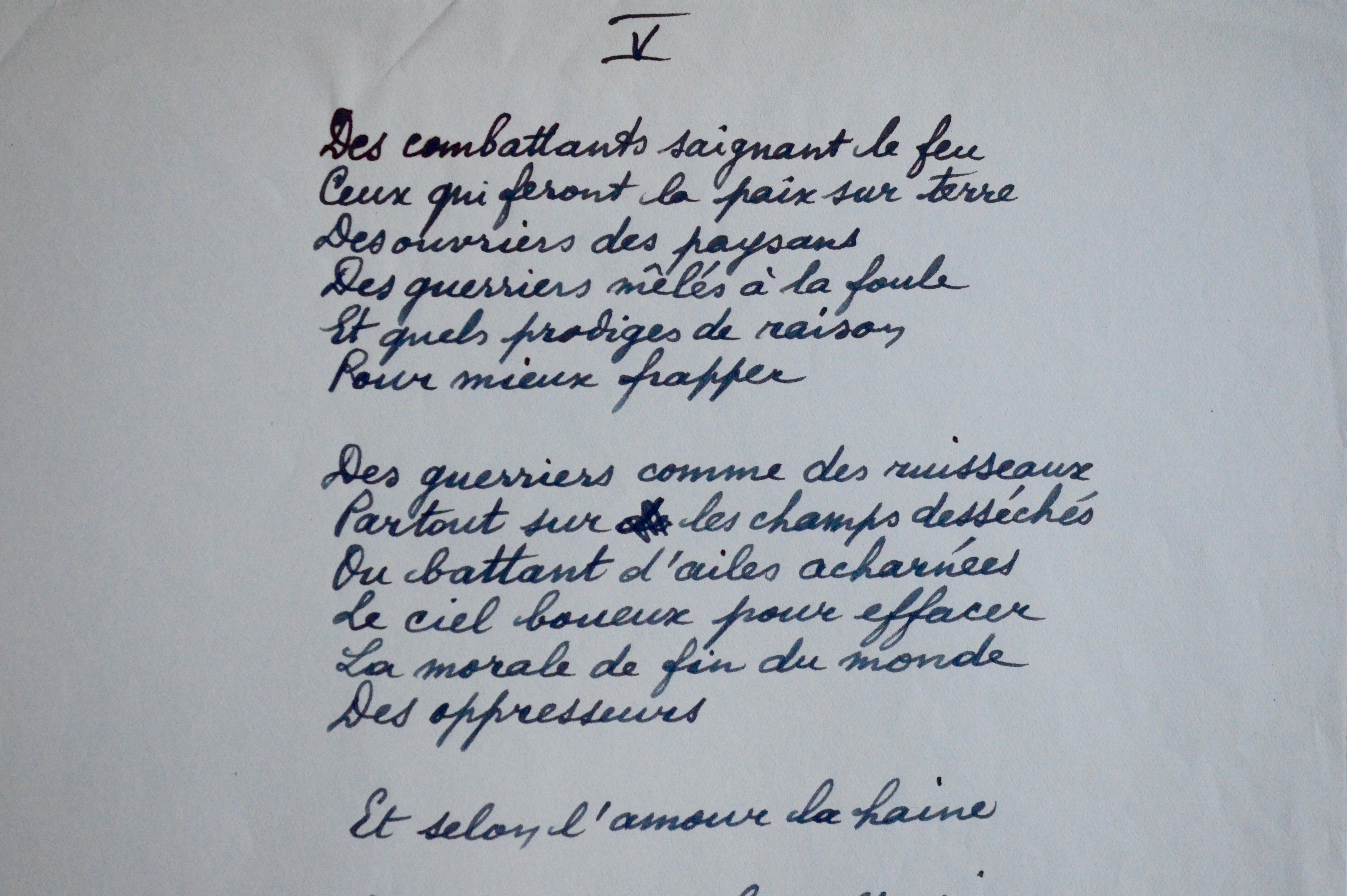 Poème autographe d’Éluard en hommage au jeune Lucien Gros, fusillé par la Gestapo
