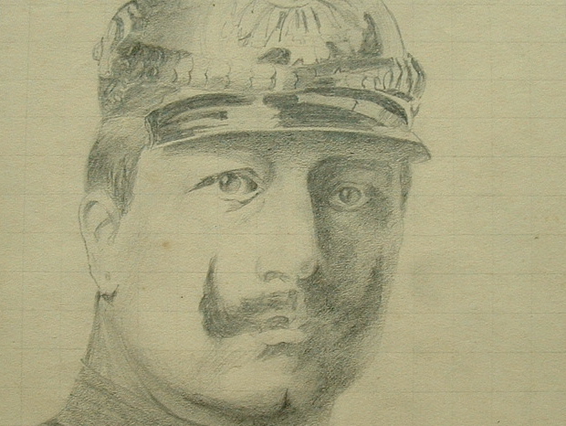 Portrait de l'empereur allemand, Guillaume II (1859/1941). Dessin à la mine de plomb signé Lucien Roaldès.