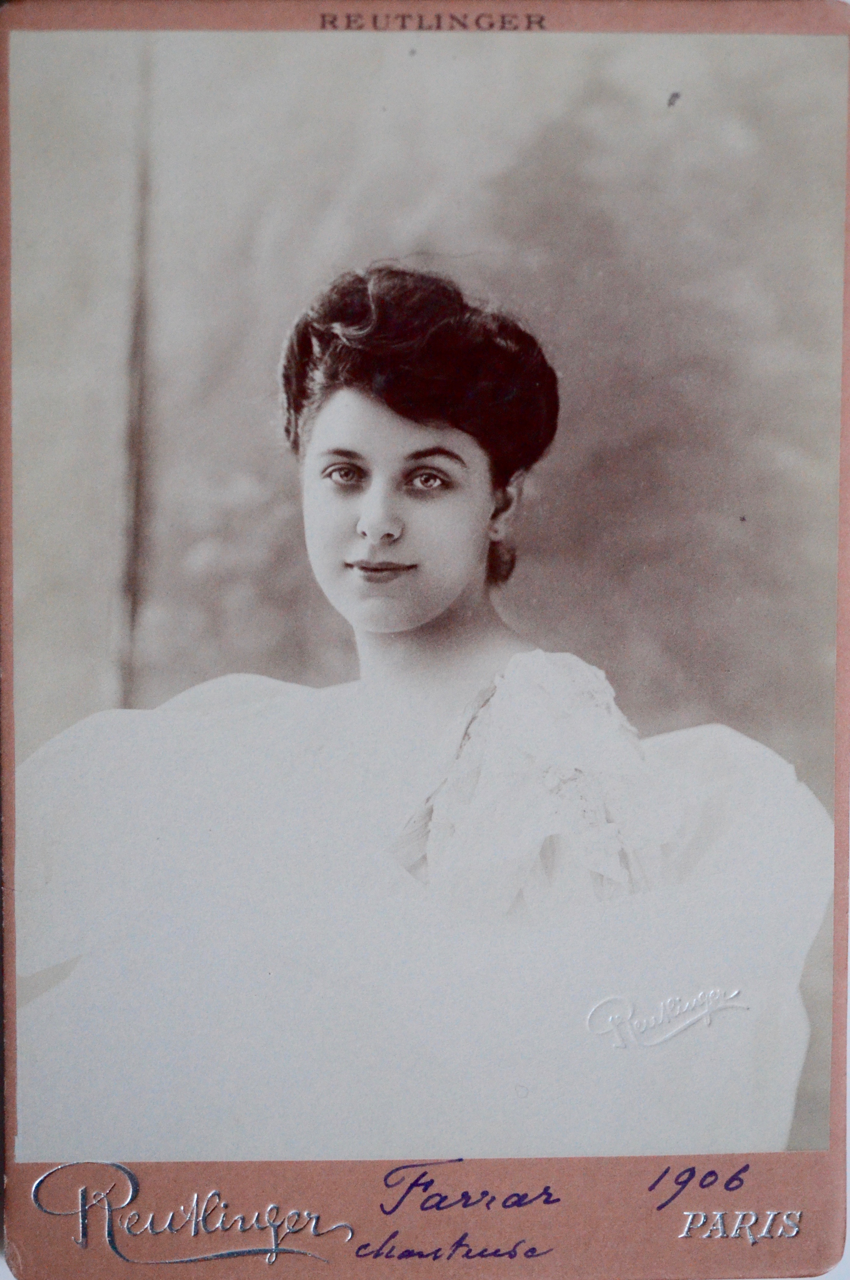 -Portrait. Tirage en noir et blanc, contrecollé sur carton estampé plusieurs fois du nom du photographe Reutlinger, à froid, au palladium et à l’encre.