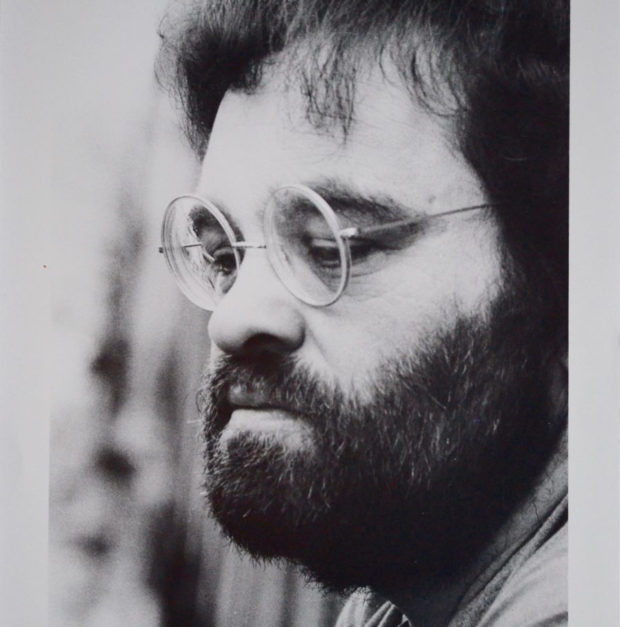 Beau portrait photographique du poète, romancier, dramaturge et cinéaste espagnol Fernando Arrabal, sur son visage de 3/4, par Bruno de Monès. Tirage argentique en noir et blanc.