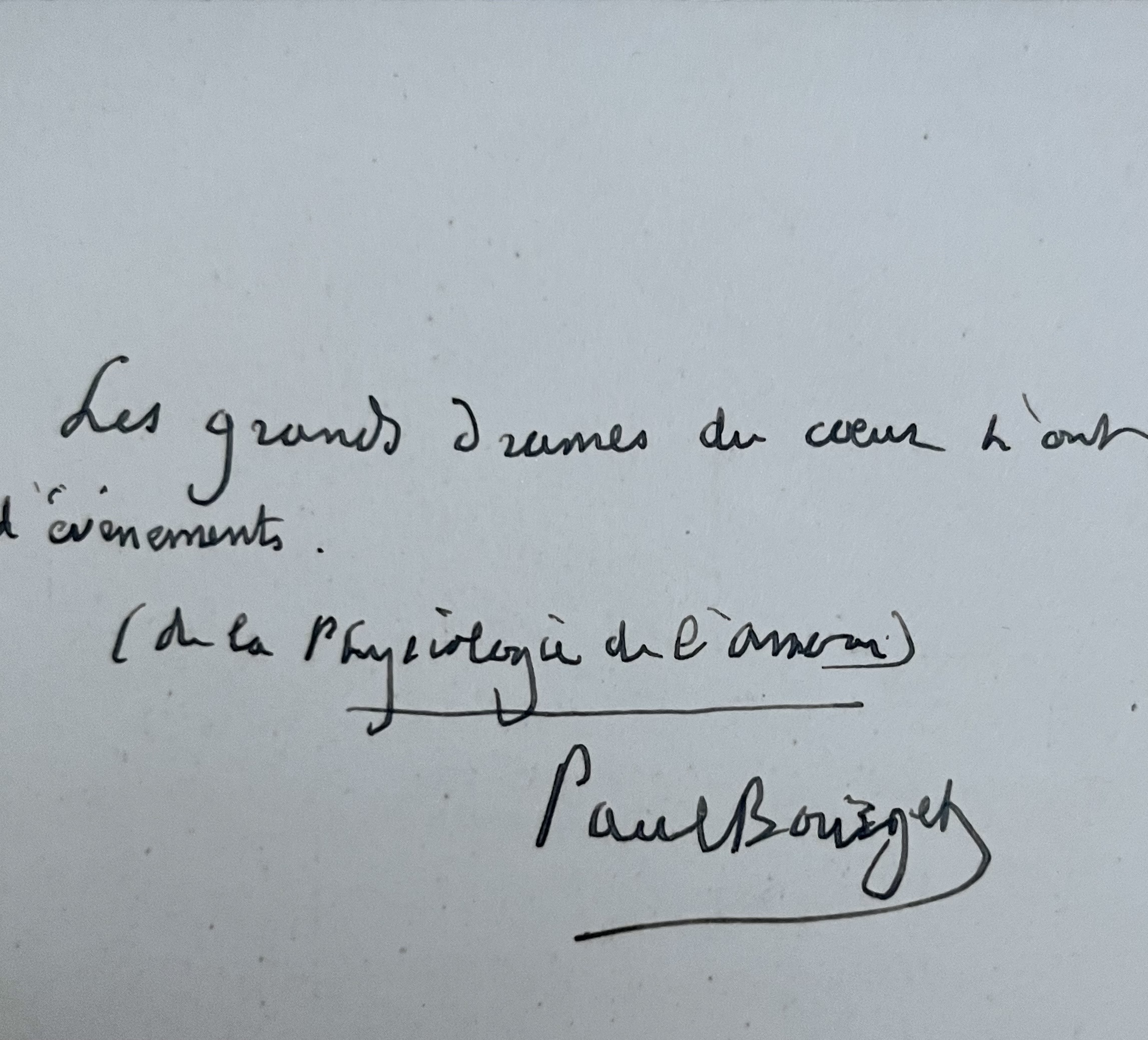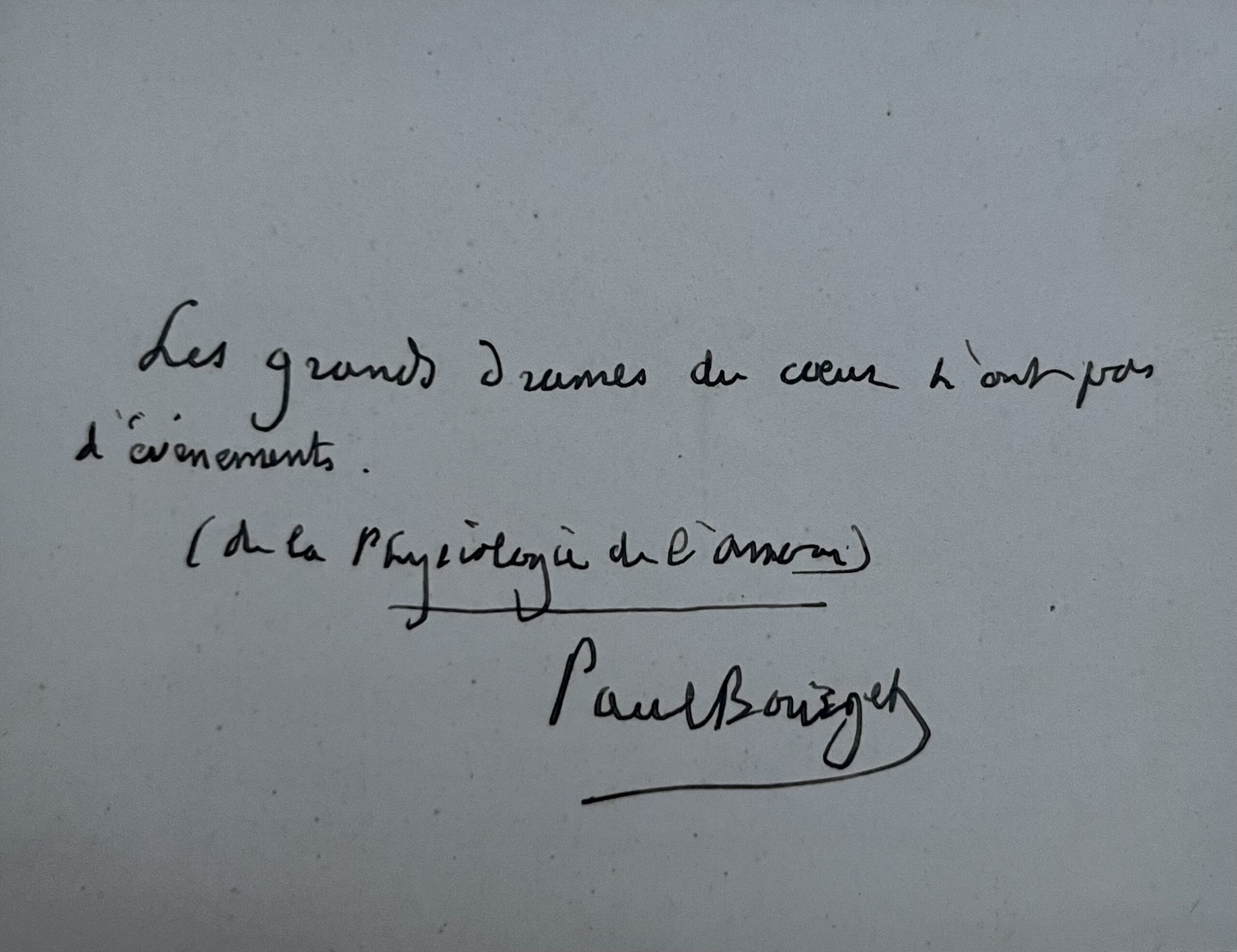 "Les grands drames du cœur n'ont pas d'évènements (de la Physiologie de l'Amour). Paul Bourget".