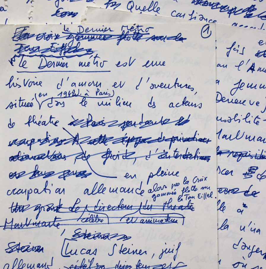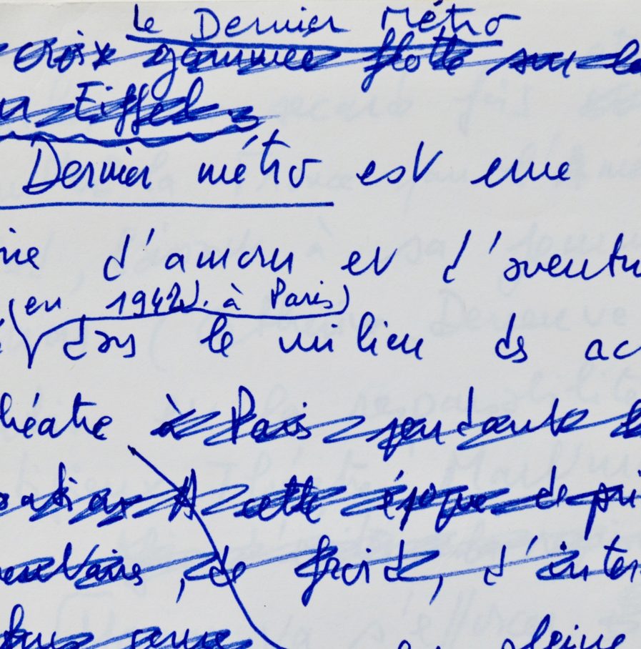 François Truffaut (Paris, 1932/1984)Précieux ensemble de manuscrits de François Truffaut pour Le Dernier Métro : scènes additionnelles et corrigées pour le scénario et résumé du film.