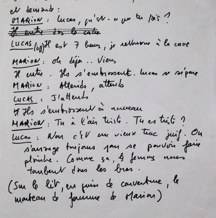 1- « Dernier Métro (scène additionnelle). 26 BIS Loge Marion. Intérieur nuit ».