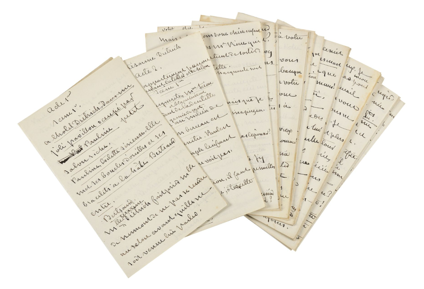 George Sand (Paris, 1804/1876)Précieux manuscrit autographe de George Sand, de l'adaptation théâtrale de son propre roman, Césarine Dietrich, écrit en 1870 et publié en 1871, pour lequel George Sand s'était inspirée de sa fille Solange, à l'intelligence brillante mais au caractère dominateur et rugueux.