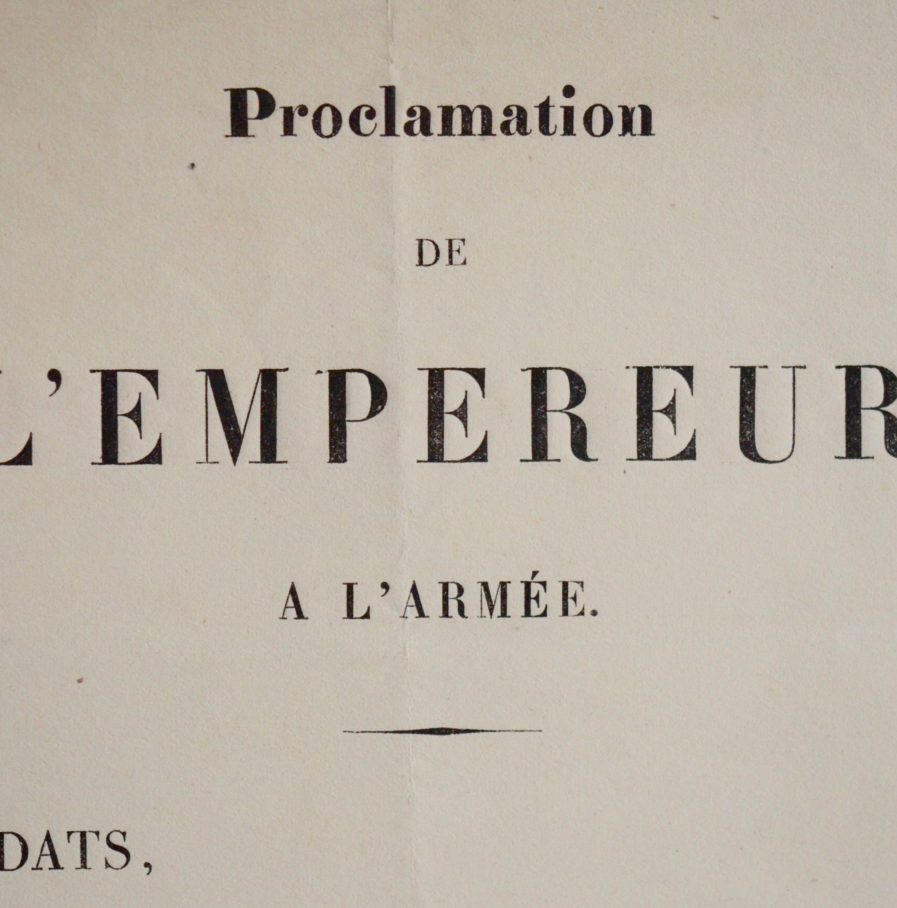 Louis Napoléon Bonaparte (Napoléon III) (Paris, 1808/1873)Le 19 juillet 1870, la France de Napoléon III entre en guerre contre la Prusse. Dix jours plus tard, du QG de Metz, l'Empereur adresse cette proclamation à ses soldats qui, avec le recul sur les événements, prête à sourire.