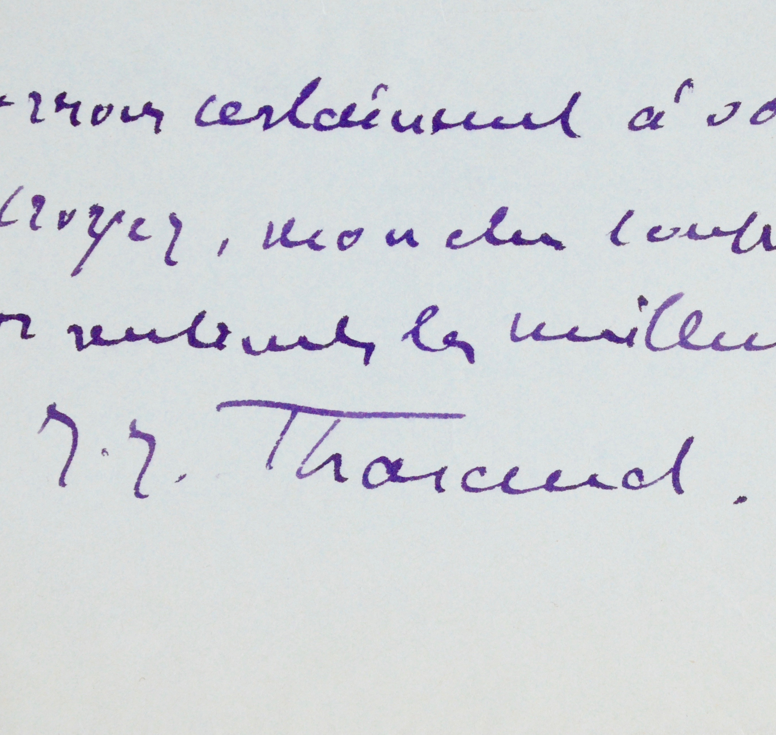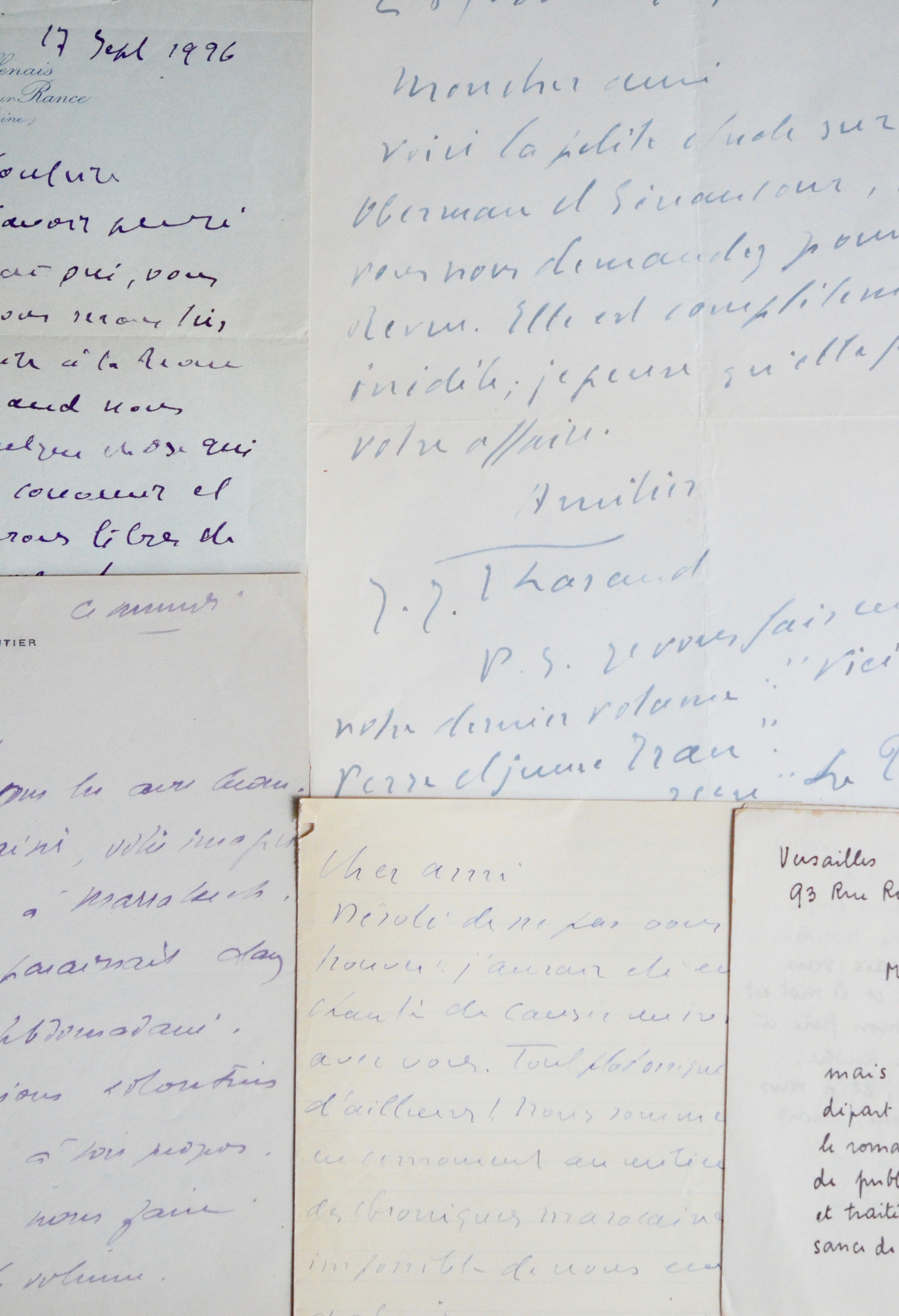 -On joint deux lettres dictées par Jean Tharaud (dont une L.S.) en 1950 : « [...] vous ne pouvez pas vous imaginer en quelle suspicion — et le mot est beaucoup trop faible — les Juifs nous tiennent, mon frère et moi [...] ».