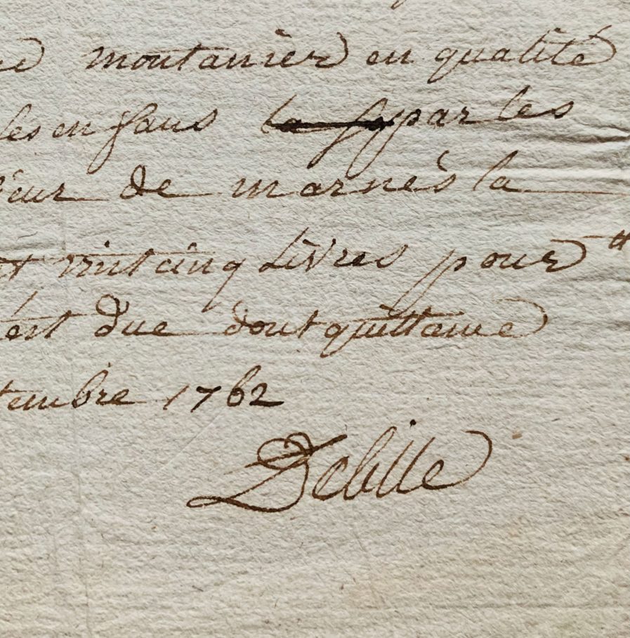 Quittance signée par Jacques Delille pour une pension qui lui est due