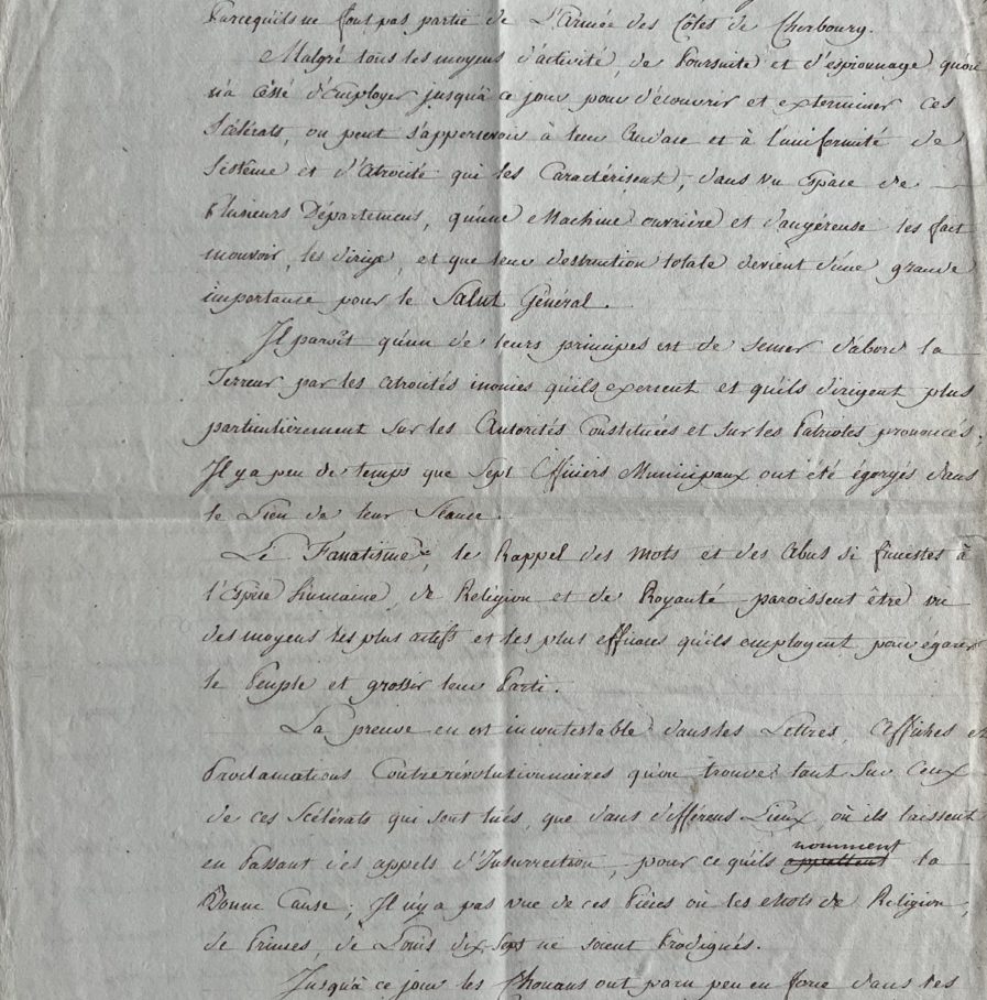 Rapport manuscrit de fructidor an 2 sur la situation des Chouans en Basse-Normandie