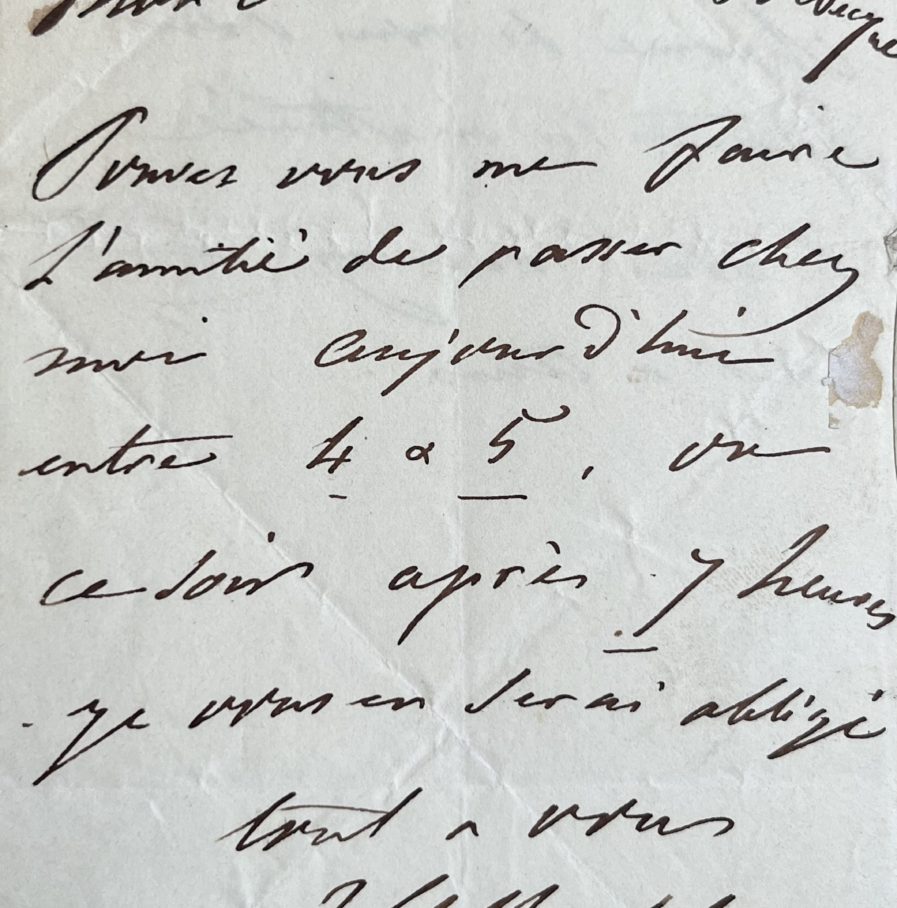 "Pouvez-vous me faire l'amitié de passer chez moi aujourd'hui entre 4 & 5, ou ce soir après 7 heures [...]".