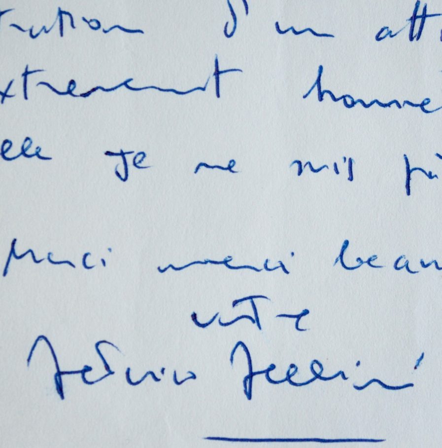 Lettre autographe signée de Federico Fellini, adressée à son "Cher ami". En français.