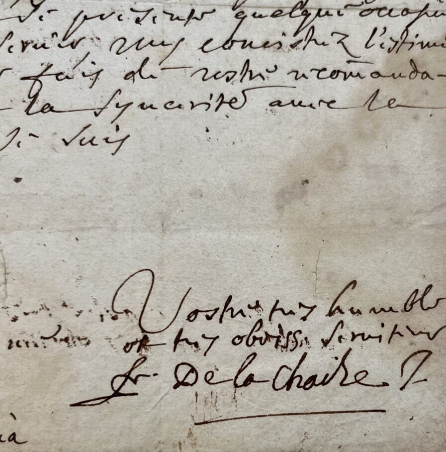 Rare lettre autographe du Père La Chaize, confesseur de Louis XIV, qui donna son nom au cimetière parisien