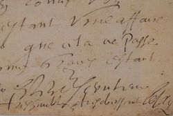 "J'auray l'honneur demain de vous voyr au retour de St Germain pour l'exécution de l'affaire que je tiens de vous avec beaucoup d'autres. La présente estant pour vous en donner advis avant que d'aller. Je vous supplie comme vous faictes en toutes vos actions estant une affaire d'honneur que cela se passe avec bonne grâce [...]".