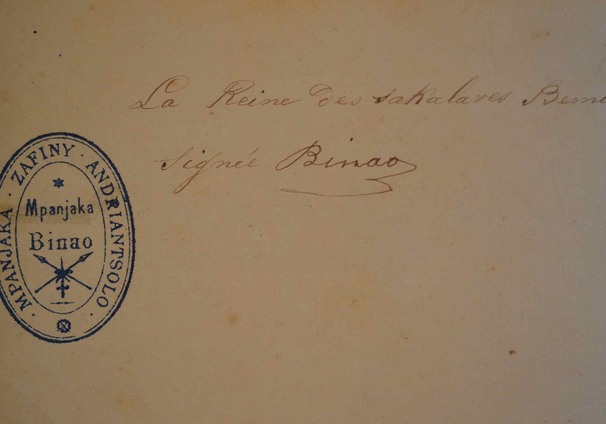 Rare lettre de la reine Binao, reine des Sakalaves, durant la conquête française.
