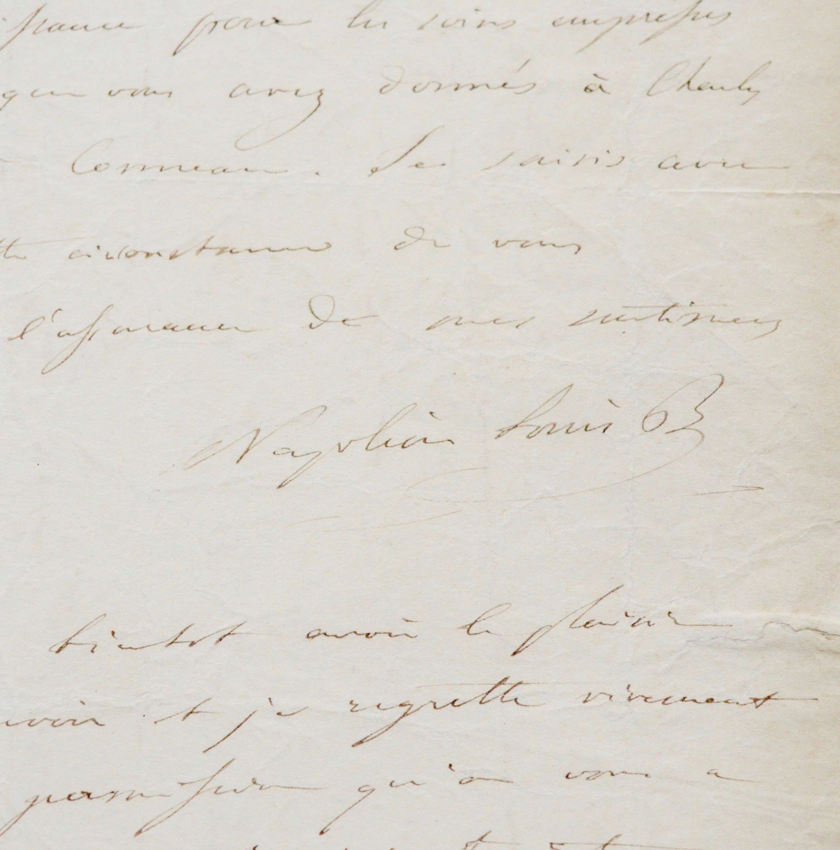 Lettre de Louis-Napoléon Bonaparte, signée « Napoléon Louis B. », adressée à M. Lebrun.
