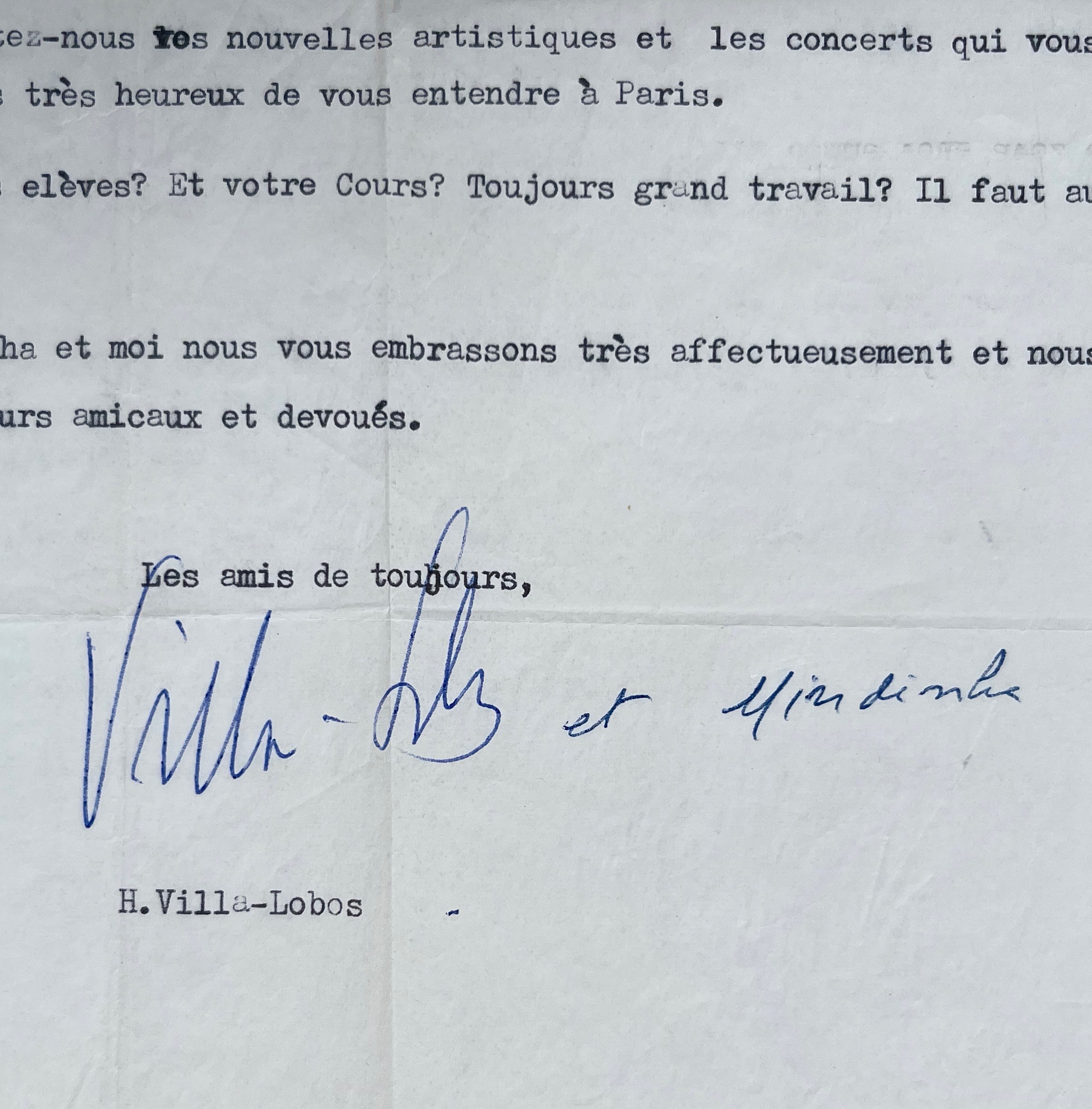 Rare lettre du compositeur brésilien Heitor Villa-Lobos à la pianiste Marguerite Long