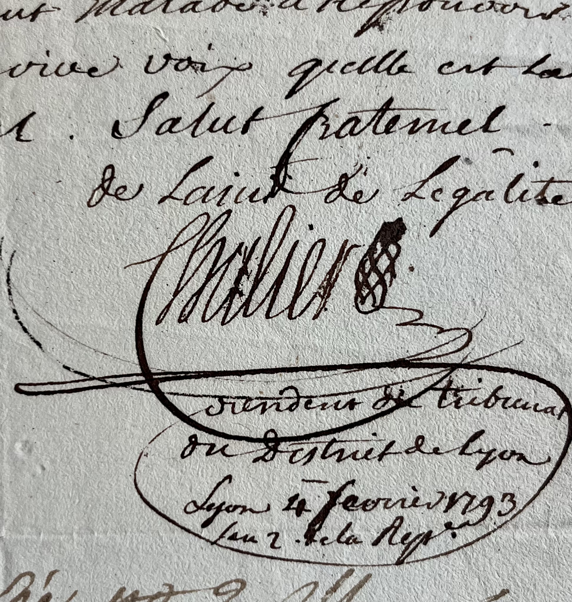 Rare pièce de la main du révolutionnaire jacobin Joseph Chalier, signée «Chalier président du tribunal du district de Lyon».