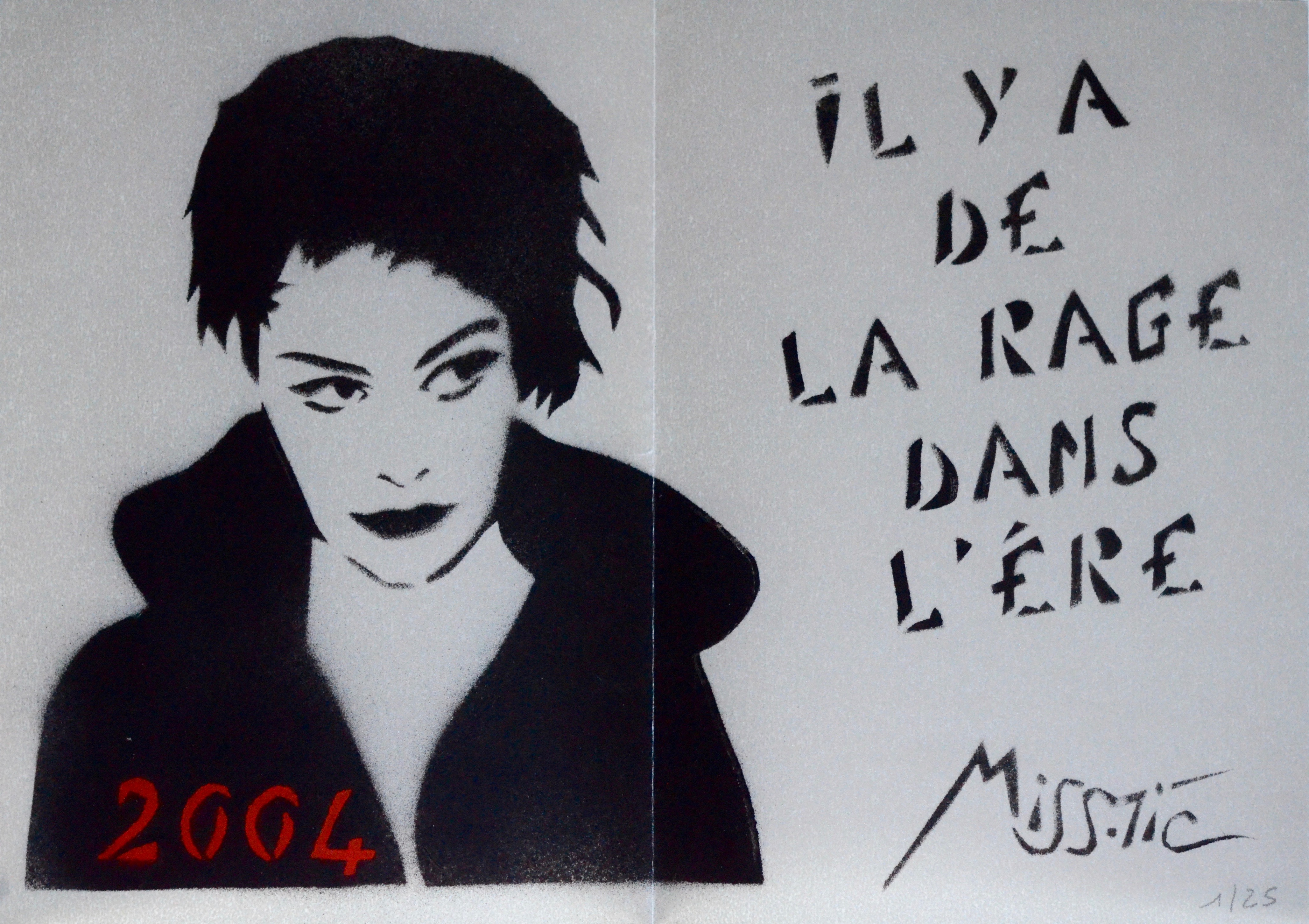 Rare pochoir de Miss.tic « il y a de la rage dans l’ère », numéroté 1/25