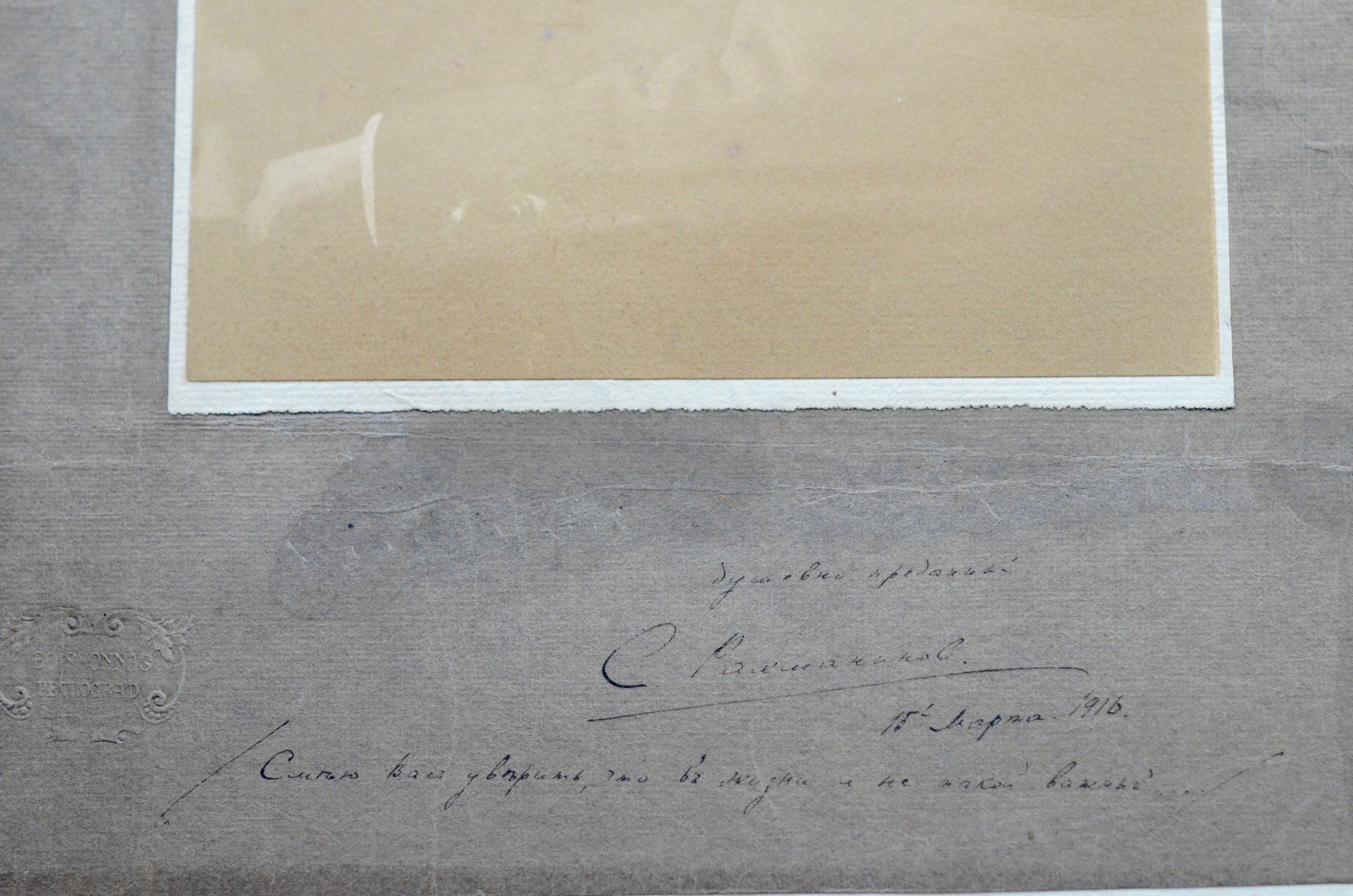 Rare et beau portrait de Rachmaninov, avec un envoi autographe signé.