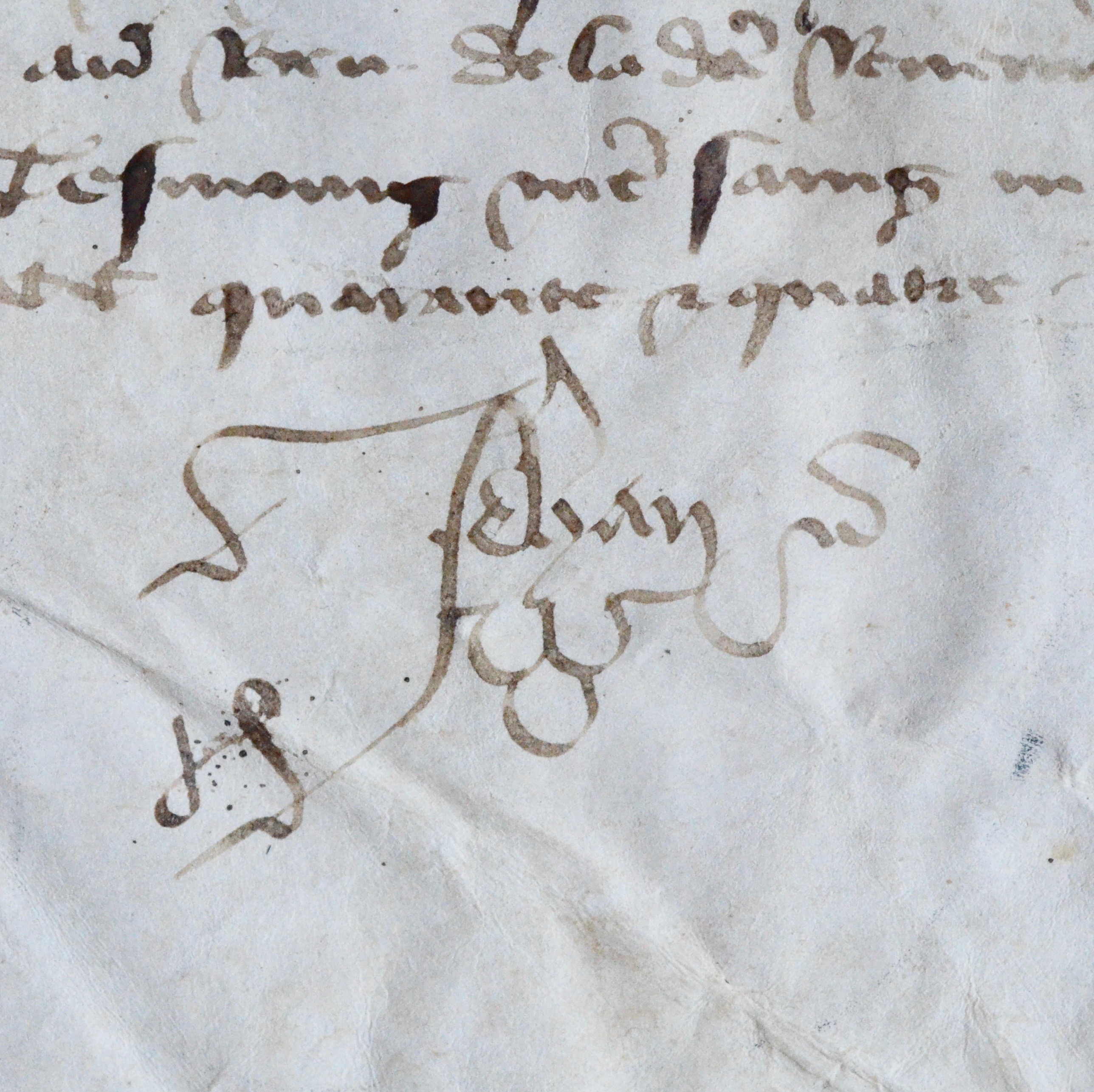 Encre brune sur parchemin anciennement contrecollé sur papier vergé (traces au verso et en marge gauche).
