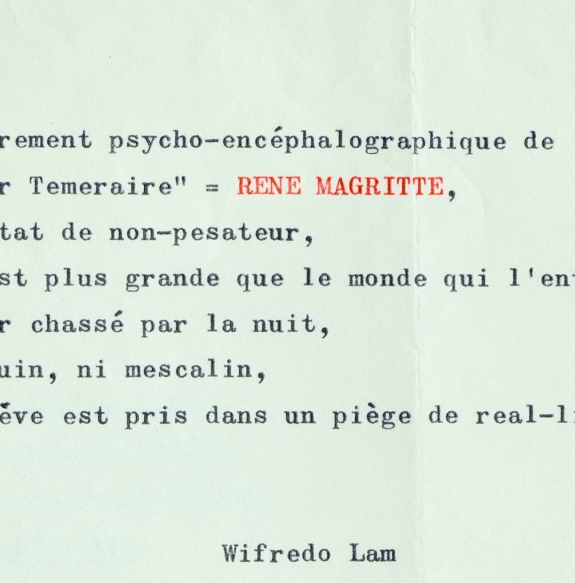 Rare texte surréaliste de Wifredo Lam, au sujet de Magritte