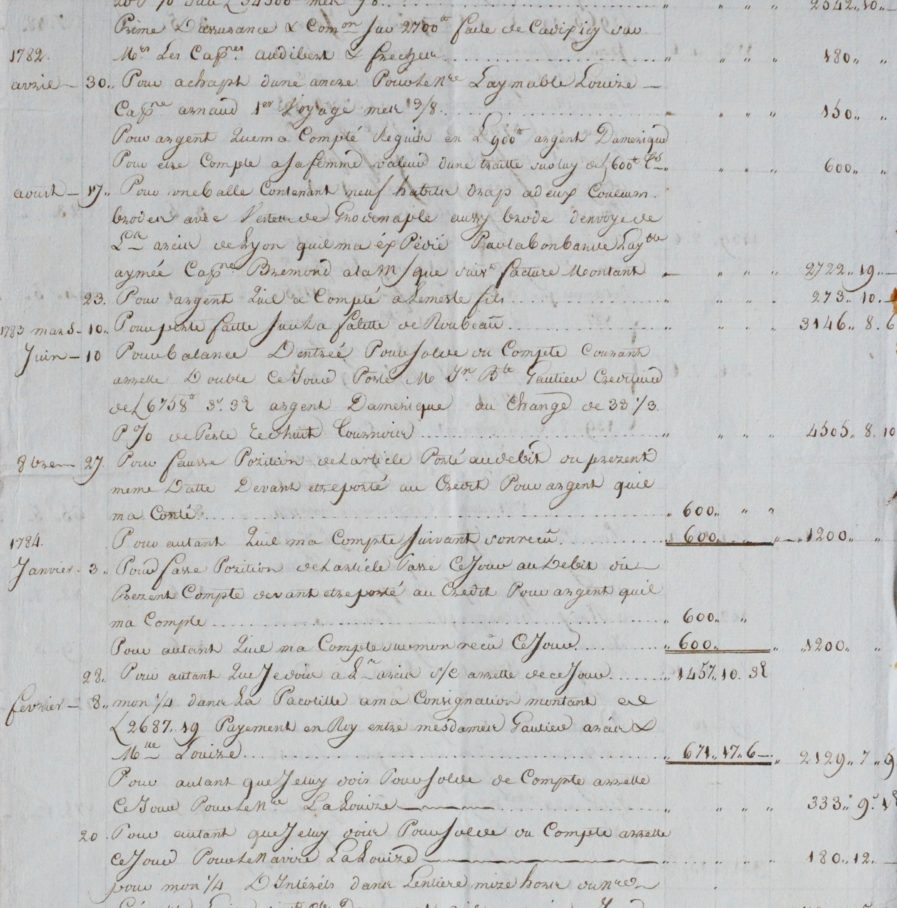 Comptes d’un navire négrier, l’Aimable Louise, en 1784