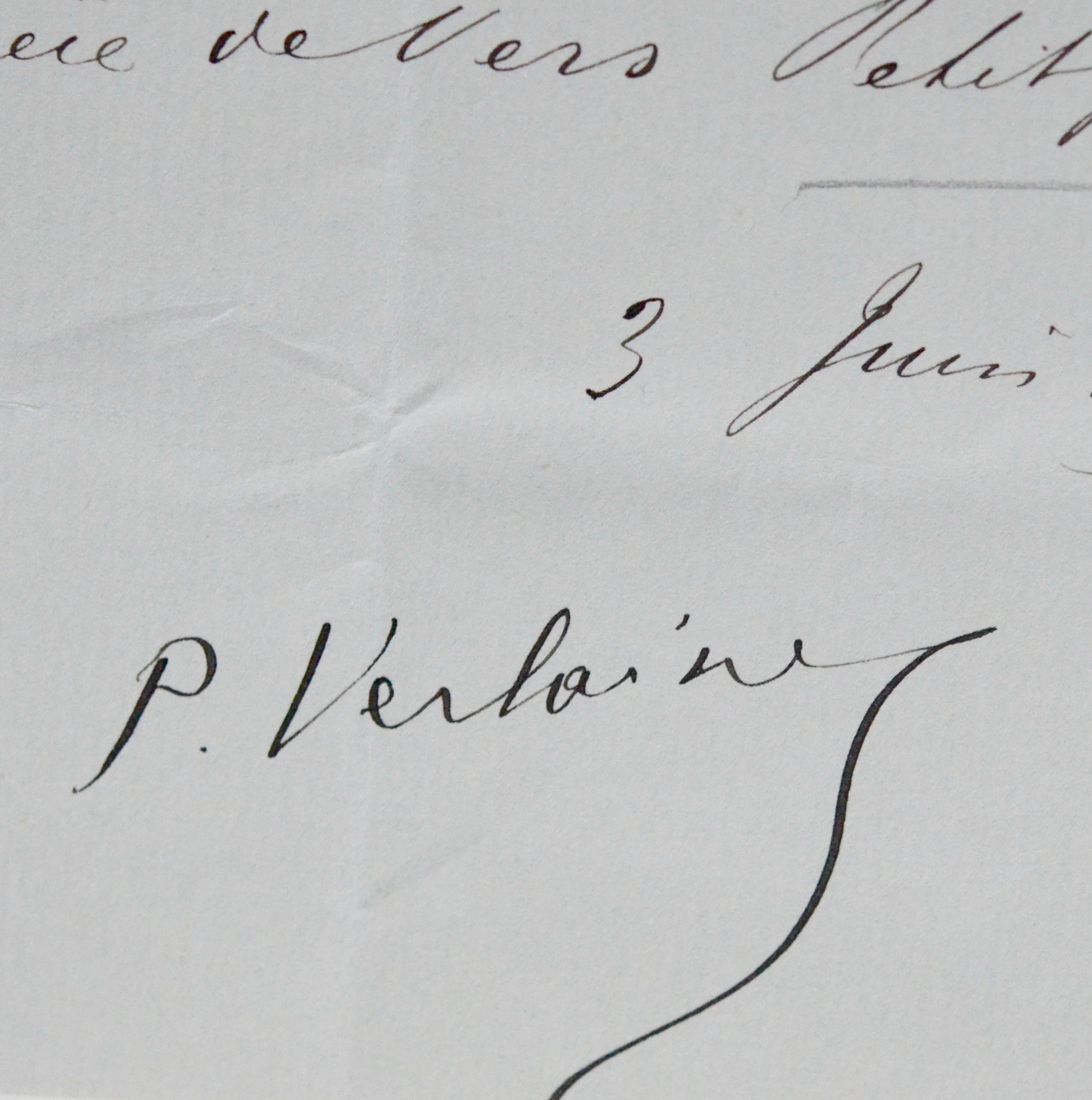 Reçu signé de Verlaine à Vanier pour le poème « À propos d’un petit panier »
