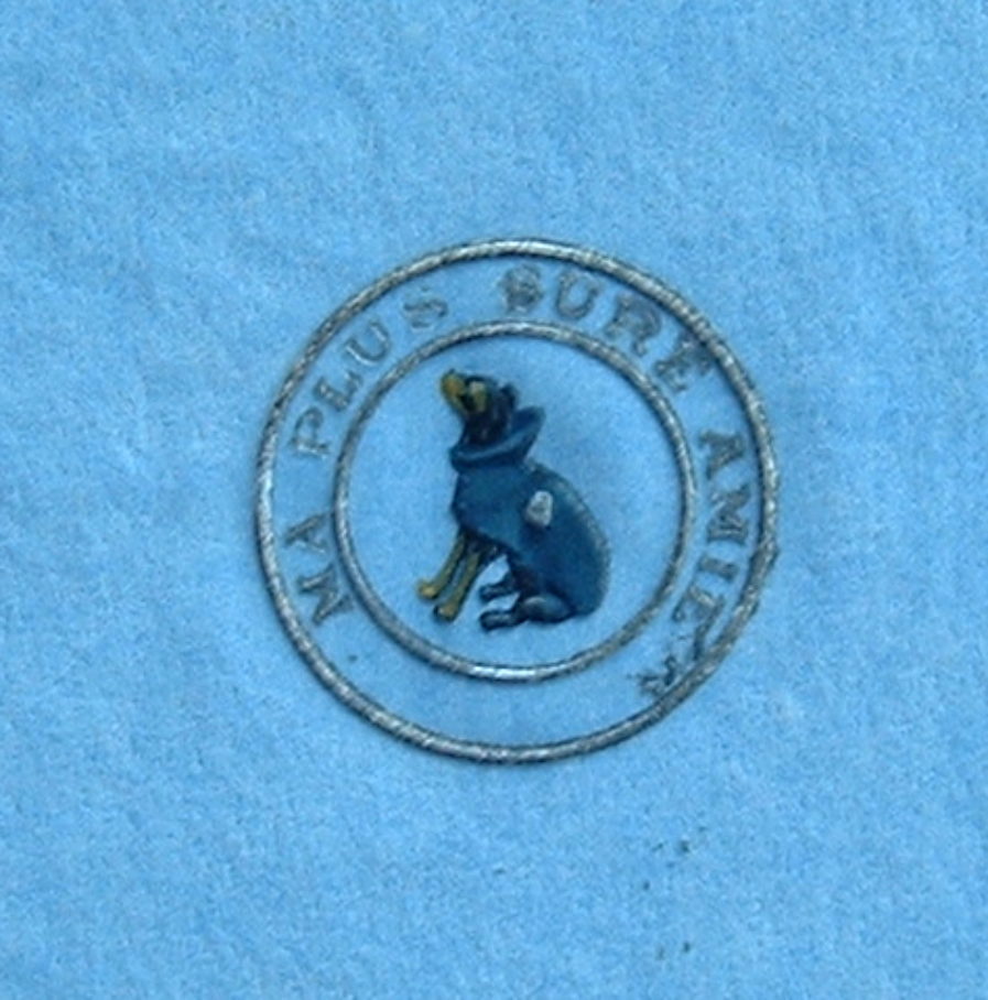 Bel en-tête à sa devise "ma plus sûre amie" et son adresse, av. des Champs-Elysées. Papier bleu.