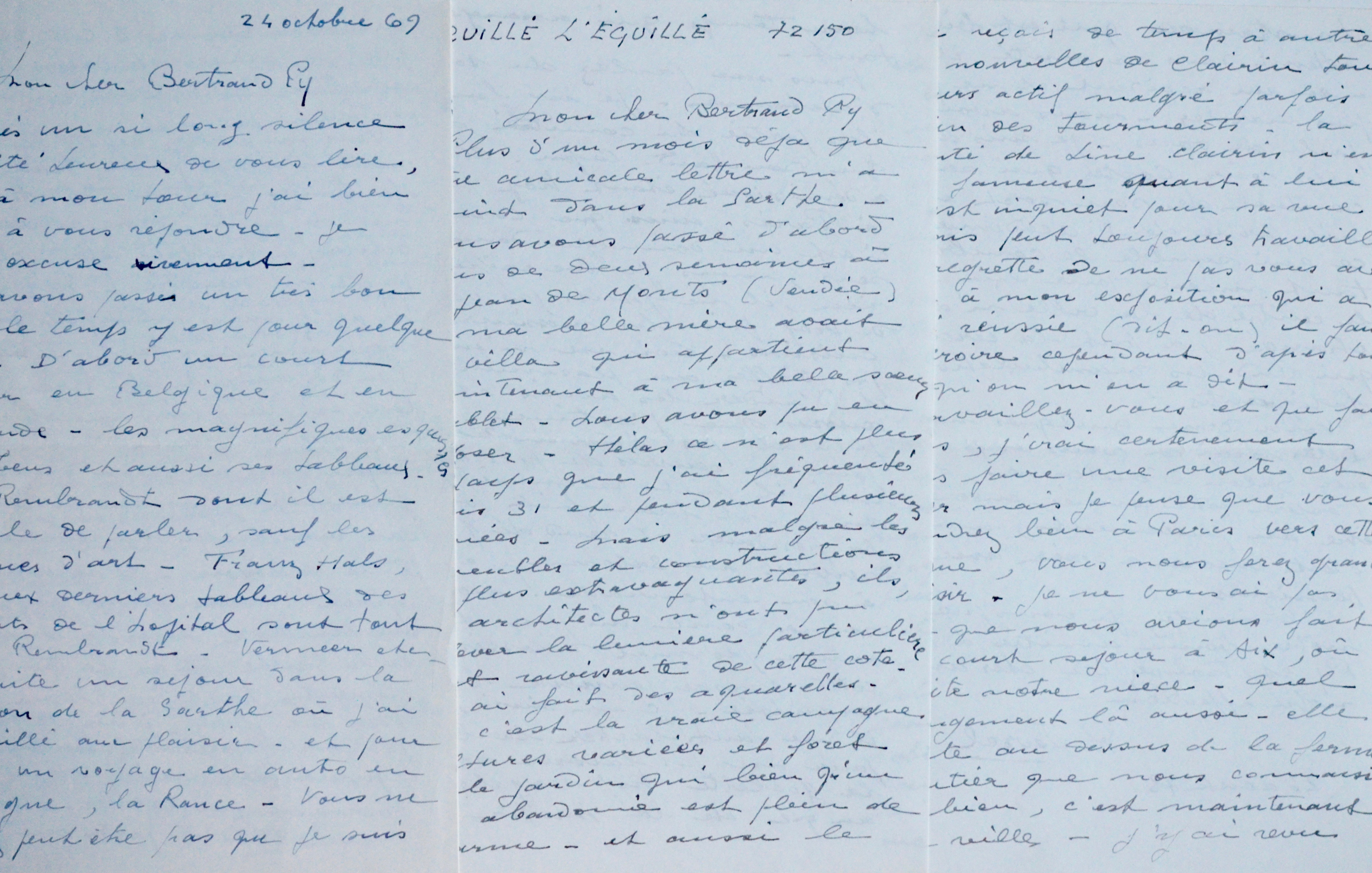 René Levrel (Nantes, 1900/1981)Ensemble de deux lettres de René Levrel, adressées au peintre Bertrand Py. Deux enveloppes conservées.