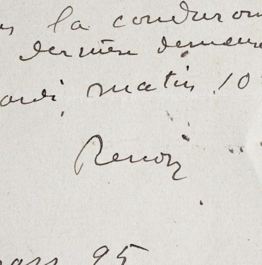 Auguste Renoir (Limoges, 1841/1919)Poignante lettre d'Auguste Renoir, adressée à Camille Pissarro.