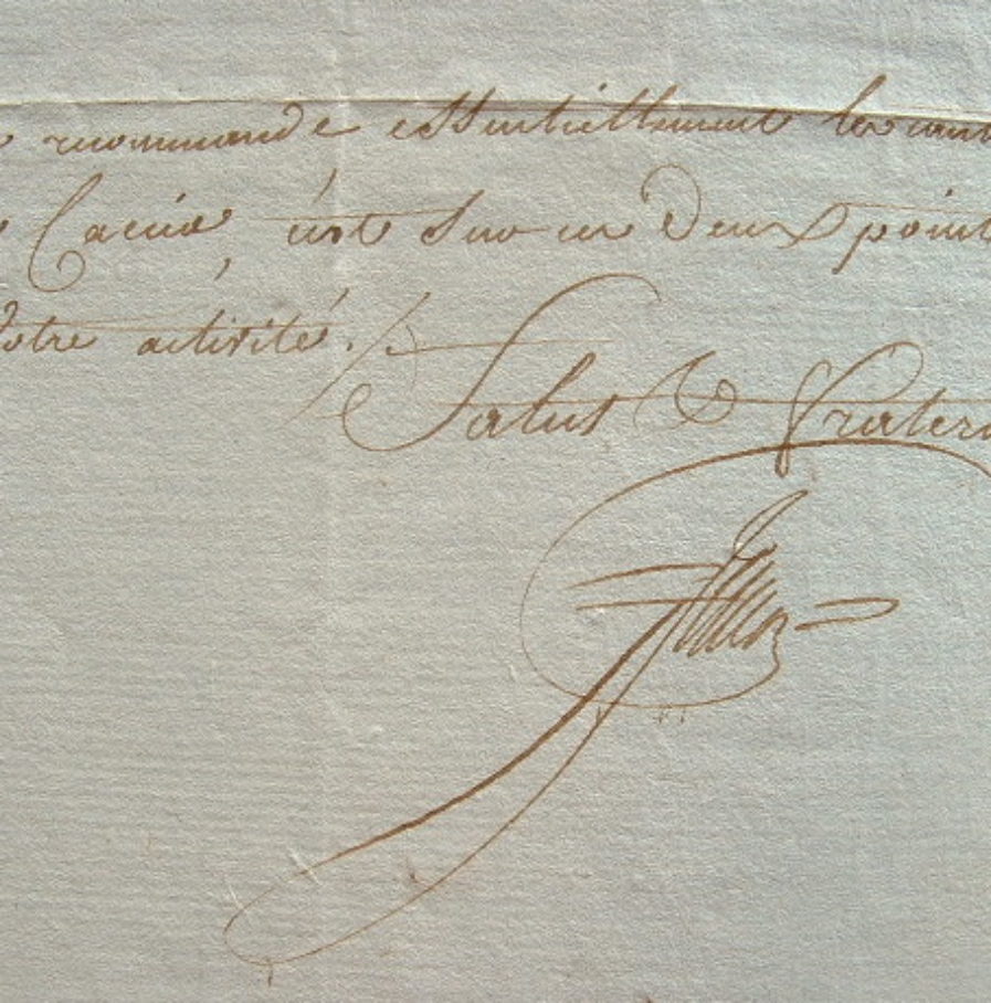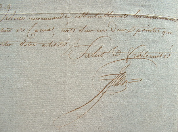 Lettre de Junot, "agent en chef du service des fournitures militaires de la 23e division (Isle de Corse)", qui ordonne à Abbatucci de faire une tournée dans les différents établissements sous sa responsabilité pour la fourniture et distribution de viande. «Cette mesure devient d'autant plus nécessaire qu'il parait que les gardes magasins comme les bouchers s'opiniatrent à méconnaître vos pouvoirs à cet égard ; il convient donc que vous vous présentiez sur les lieux pour désabuser les ignorants et faire taire les malveillants [...]».