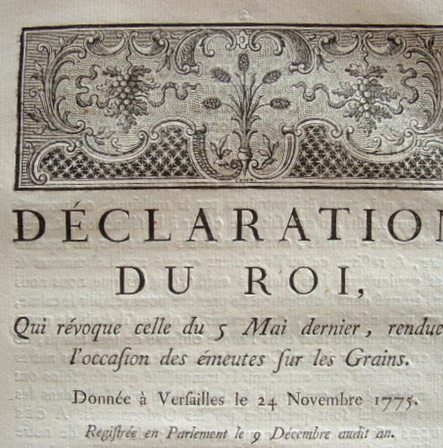 "Déclaration du Roi qui révoque celle du 5 mai dernier, rendue à l'occasion des émeutes sur les grains".