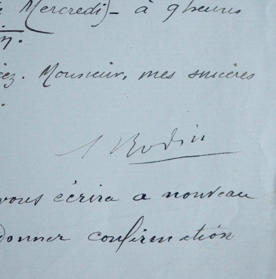 Auguste Rodin écrit au transporteur de tableaux et d'objets d'art Pottier, pour modifier la date d'un enlèvement. "Veuillez je vous prie, prendre note de faire prendre les marbres, au dépôt des marbres 182 rue de l'Université lundi 16 ct [...]. On vous écrira à nouveau pour vous donner confirmation".