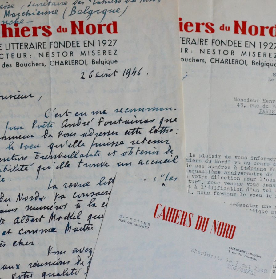 • 20 mars 1948. L.D.S. Roger Desaise et Nestor Miserez demandent à Henry Charpentier d'écrire un article de 175 lignes de 50 signes maximum "traitant du point de vue - Mallarmé et le verbe -", pour la revue des Cahiers du Nord, toujours sur la recommandation d'André Fontainas.