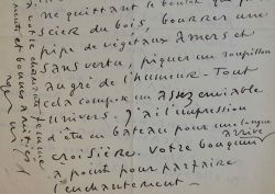 Roger Wild (Lausanne, 1894/1987)Dans cette belle lettre, le peintre Roger Wild remercie son ami et confrère Marcel Mouillot pour l'envoi d'un livre : « Vous êtes un ange tutélaire vous pourvoyez à tout. Grâce à vous, je vais embarquer tout à l'heure pour le plus aimable des voyages sous votre égide. Puissè-je me rendre digne de vos délicats procédés. » Il évoque ses difficultés matérielles : « La croute est difficile à dépister. L'humble légume lui-même est rétif. Avec quelques colis de Paris et des faims bien modestes on y arrivera. Je vis hirsute parmi les pies et les libellules. Me rasant deux fois la semaine, ne sortant quà peine, ne quittant le boulot que pour scier du bois, bourrer une pipe de végétaux ares et sans vertu, piquer un roupillon au gré de l'humeur. Tout cela compose un assez enviable univers. J'ai l'impression d'être en bateau pour une longue croisière [...]. »