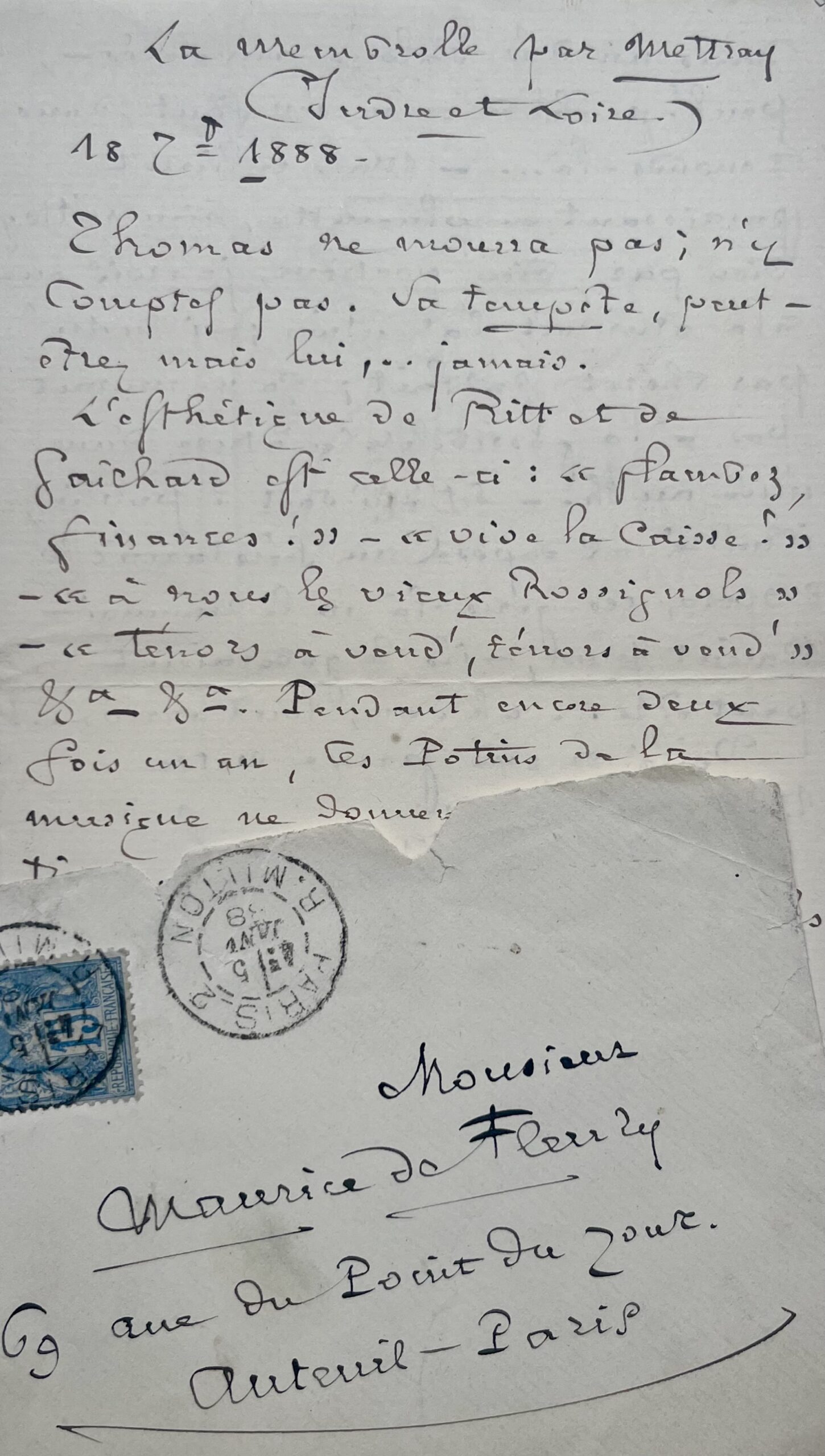 Emmanuel Chabrier (Ambert, 1841/1894)Amusante lettre d'Emmanuel Chabrier :