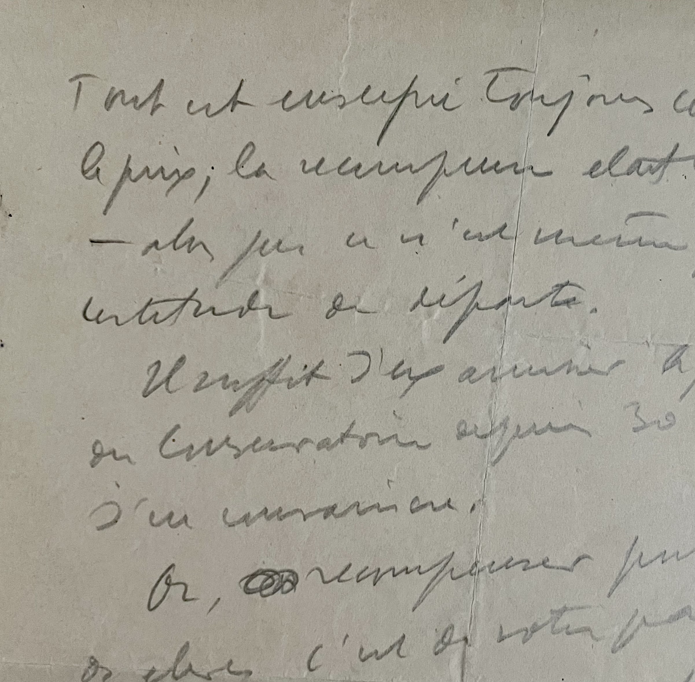 Manuscrit de Sacha Guitry, au crayon, relatif aux concours du Conservatoire :