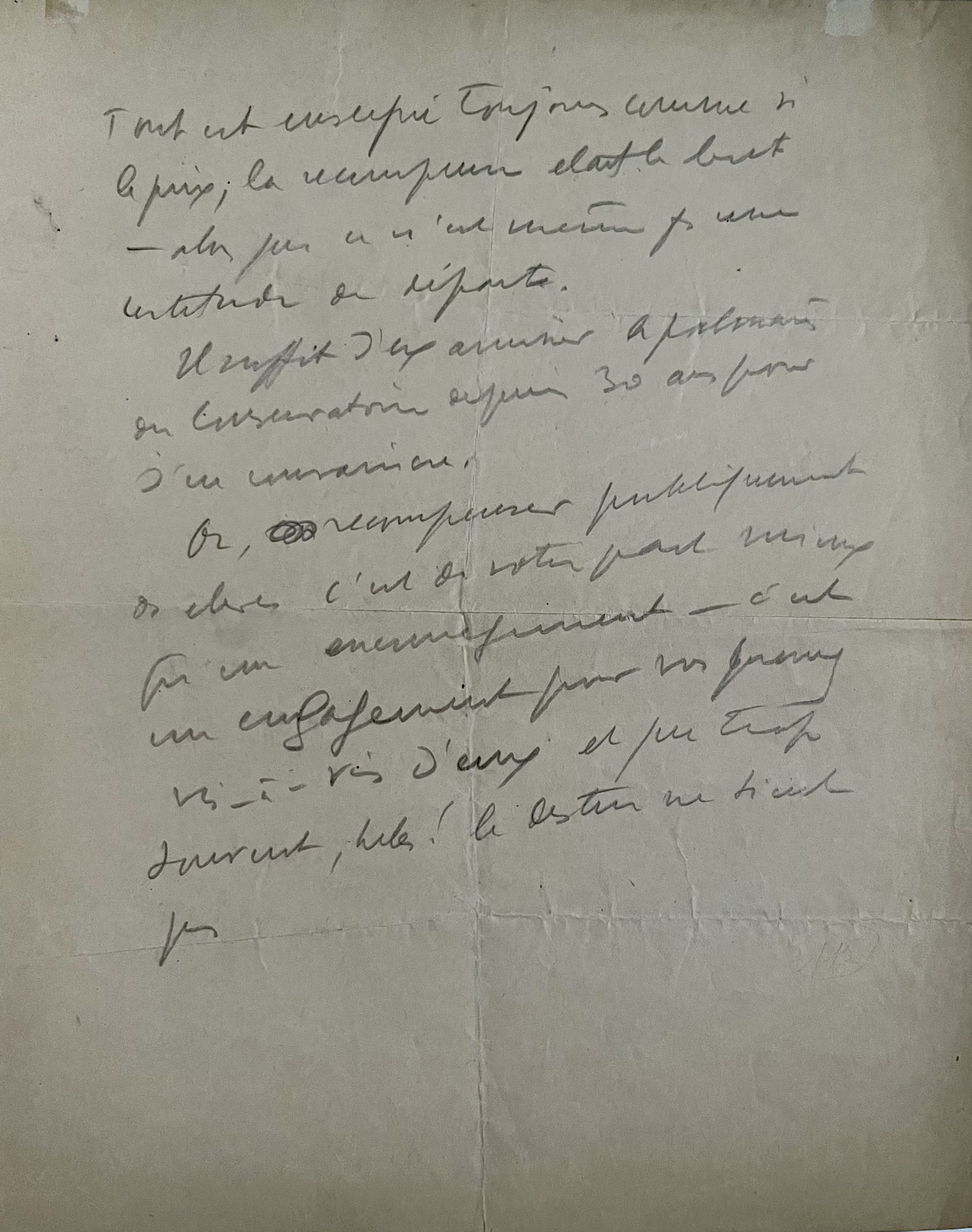 "Tout est enseigné toujours comme si le prix, la récompense, était le but - alors que ce n'est même pas une certitude de départ. Il suffit d'examiner le palmarès du Conservatoire depuis 30 ans pour s'en convaincre. Or, récompenser publiquement des élèves c'est de votre part mieux qu'un encouragement - c'est un engagement que vous prenez vis-à-vis d'eux et que trop souvent, hélas ! le destin ne tient pas".