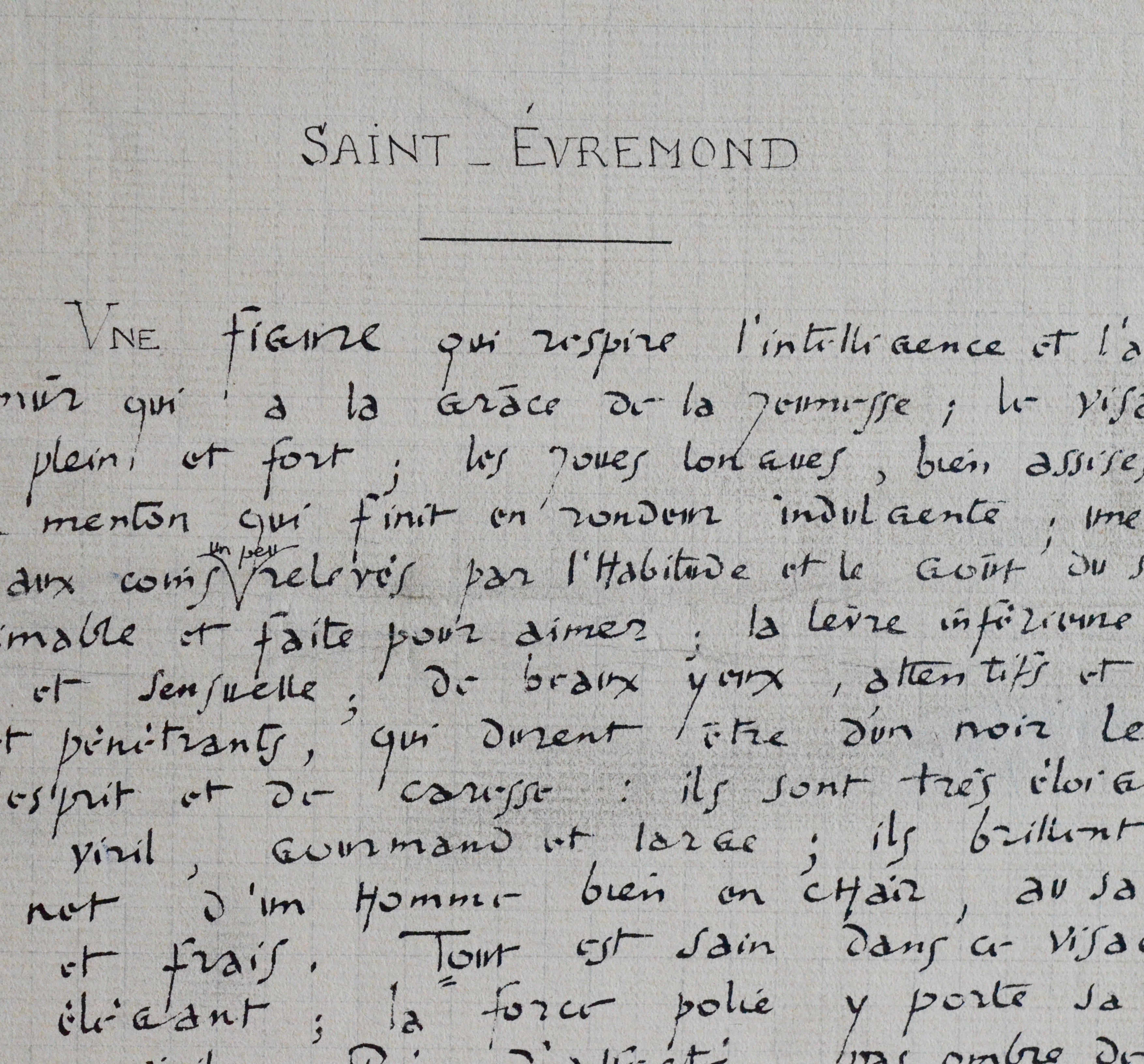 Beau manuscrit d’André Suarès sur Saint-Évremond