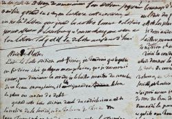 Longues notes jetées sur le papier par Saint-Lambert, donnant des instructions à son éditeur Henri Agasse, pour l'édition de ses Principes des moeurs chez toutes les nations ou Catéchisme universel [publié en 3 volumes, an V-an VI, ouvrage dans lequel, il expose que les vices et les vertus ne sont que des conventions propres à chaque peuple. Cette théorie audacieuse n'empêcha pas le livre d'obtenir le grand prix de morale de l'Institut en 1810].