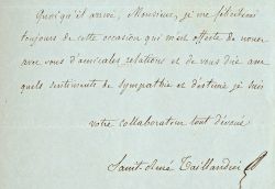 Saint-René Taillandier (Paris, 1817/1879)L'homme de lettres Saint-René Taillandier recommande le poète Joseph Roumanille à un collaborateur : « M. Roumanille, un vrai et sérieux poète, une âme simple et généreuse, vient de recueillir des poésies provençales qui m'ont parues pleines d'intérêt. M. Roumanille a entrepris de donner à la poésie populaire de la Provence et du Comtat une direction élevée, morale et bienfaisante ; ce que Jasmin [1798-1864] a fait dans son pays, il voudrait le faire parmi ces contrées du Rhône dont le dialecte vous le savez n'est pas tout à fait le même que celui de Toulouse ou d'Agen. M. Roumanille n'est pas un poète de reflet, c'est une nature originale et riche, comme ce Jasmin dont la gloire l'encourage. » Il suggère donc à son interlocuteur de faire un article sur lui dans sa revue. Celui-ci accepte, causant la joie de Saint-René Taillandier : « C'est un charmant esprit, un poète plein de grâce, et un chrétien simple et naïf qui a combattu efficacement la propagande démagogique dans le Comtat de la Provence. » Suit ensuite le détail de ses oeuvres : Margandeto, Li prouvençalo, Noëls, etc. [Joseph Roumanille (1818-1891) est l'un des fondateurs du Félibrige avec Frédéric Mistral, Théodore Aubanel, Jean Brunet, Paul Giéra, Anselme Mathieu et Alphonse Tavan.]