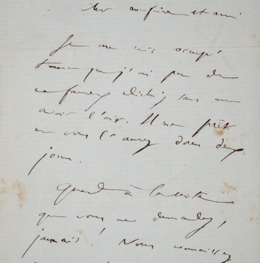 Jolie lettre de Saint-Saëns, adressée à un confrère ami, dont la femme interpréta un de ses rôles.