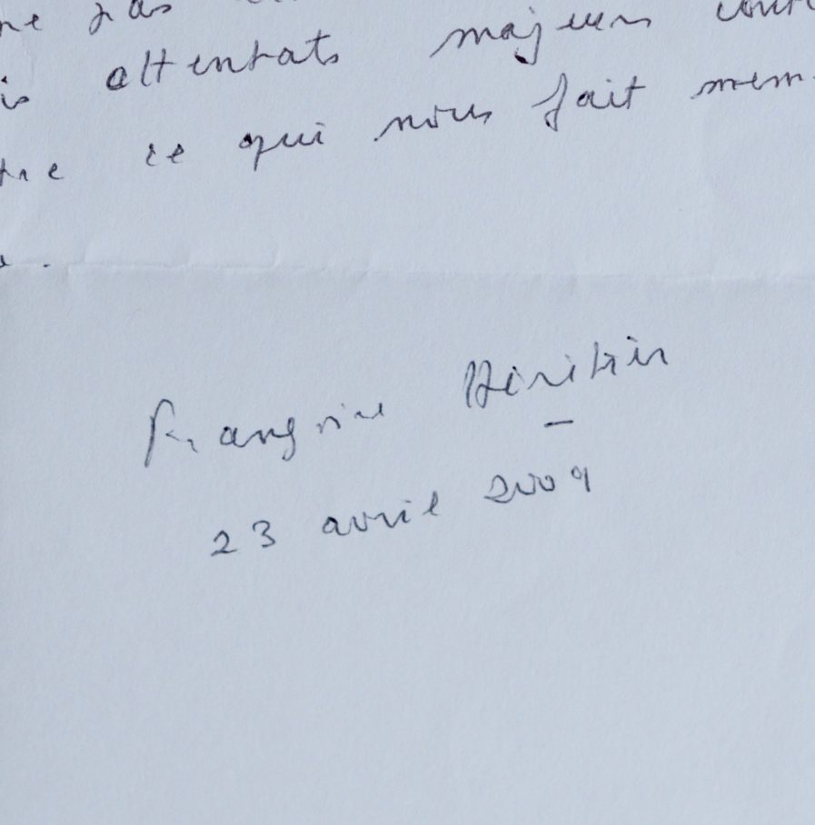 Françoise Héritier (Veauche, Loire, 1933/2017)Beau texte autographe signé de Françoise Héritier :