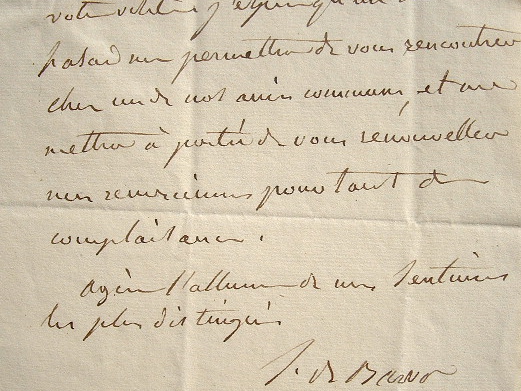 «On me dit, monsieur, que vous voulez bien avoir la complaisance de me changer contre deux vases, le cabaret de porcelaine que Sa Majesté a eu la bonté de m'envoyer [...]». Le lendemain, elle a fait son choix. «Je me décide pour les vases qui ne sont pas brunis, et le déjeuner est à votre disposition [...]. J'espère qu'un heureux hasard me permettra de vous rencontrer chez un de nos amis communs [...]».