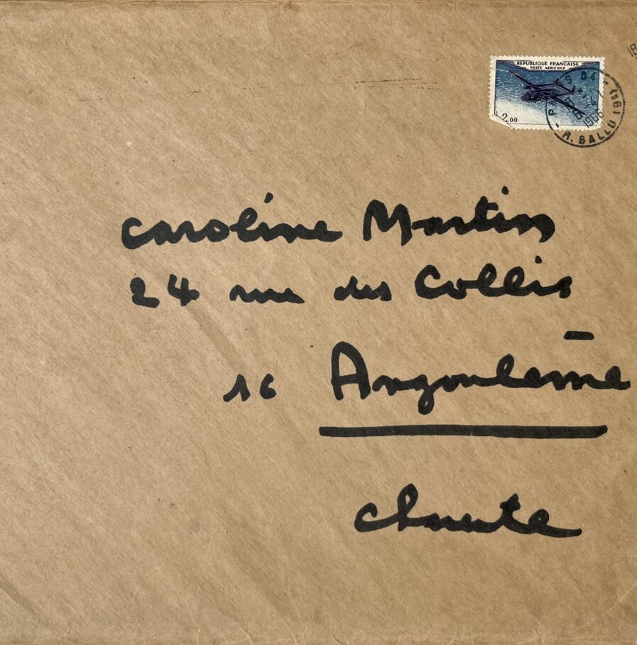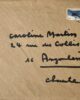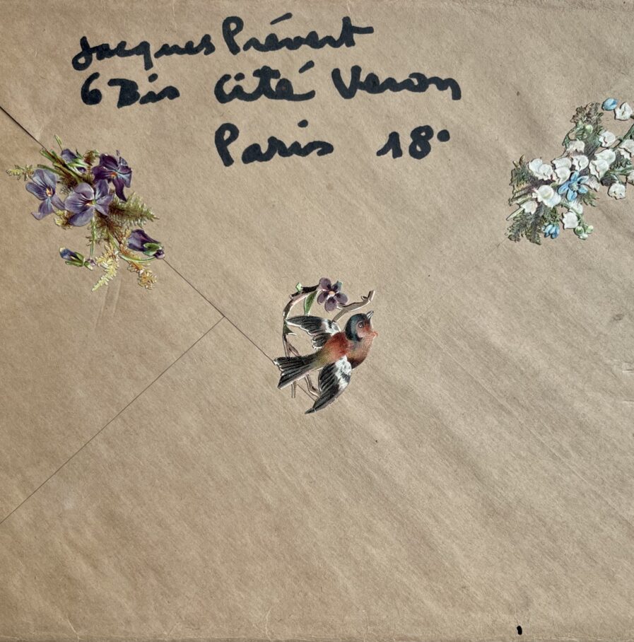 Accompagné d'une grande enveloppe autographe, portant au revers, sous son adresse de la ciré Véron, trois petits collages (oiseau et fleurs).