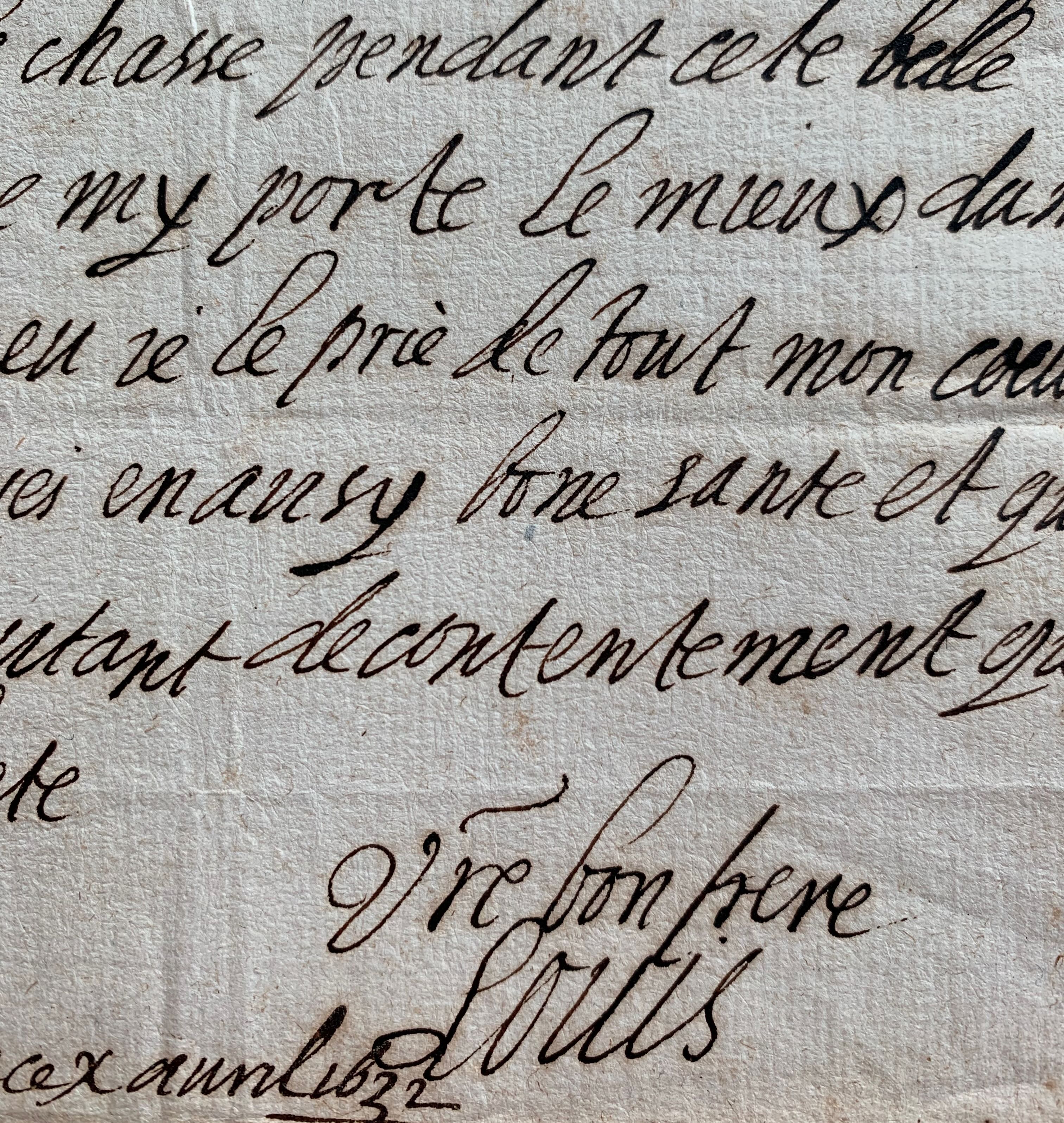 Louis XIII, dit le Juste (Fontainebleau, 1601/1643)Superbe lettre intime entièrement autographe de Louis XIII à l'une de ses soeur [Elisabeth, Christine ou Marie-Henriette de France].