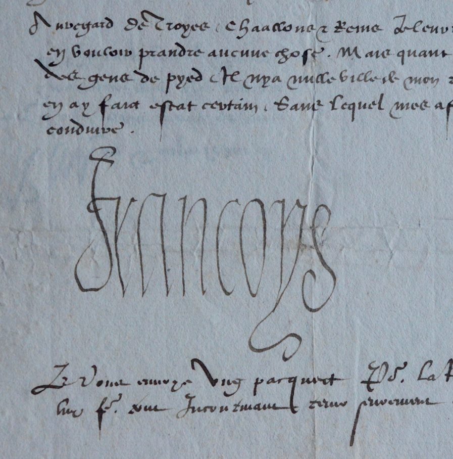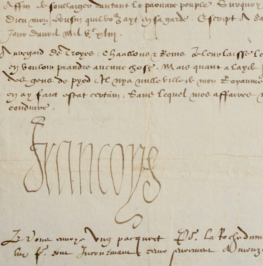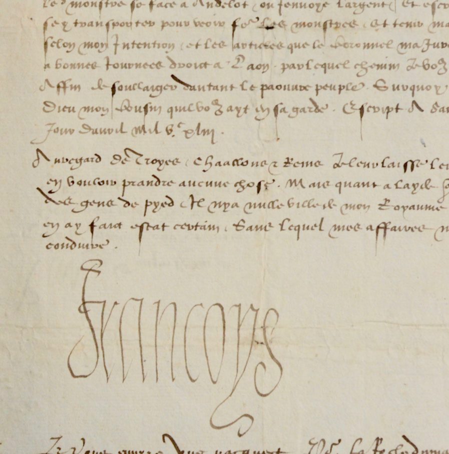 Lettre contresignée par Gilbert Bayard (c. 1490-1548), baron de La Font, diplomate et secrétaire des Finances du Roi.